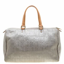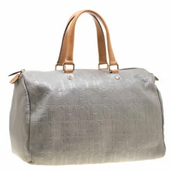 A handy bag to add to your collection, this Andy Boston by Carolina Herrera is crafted from metallic grey monogram leather and styled with neat stitch detailing. It features a top zip closure, two handles, protective metal feet, and a spacious interior to house your essentials. This bag is a creation for all occasions.