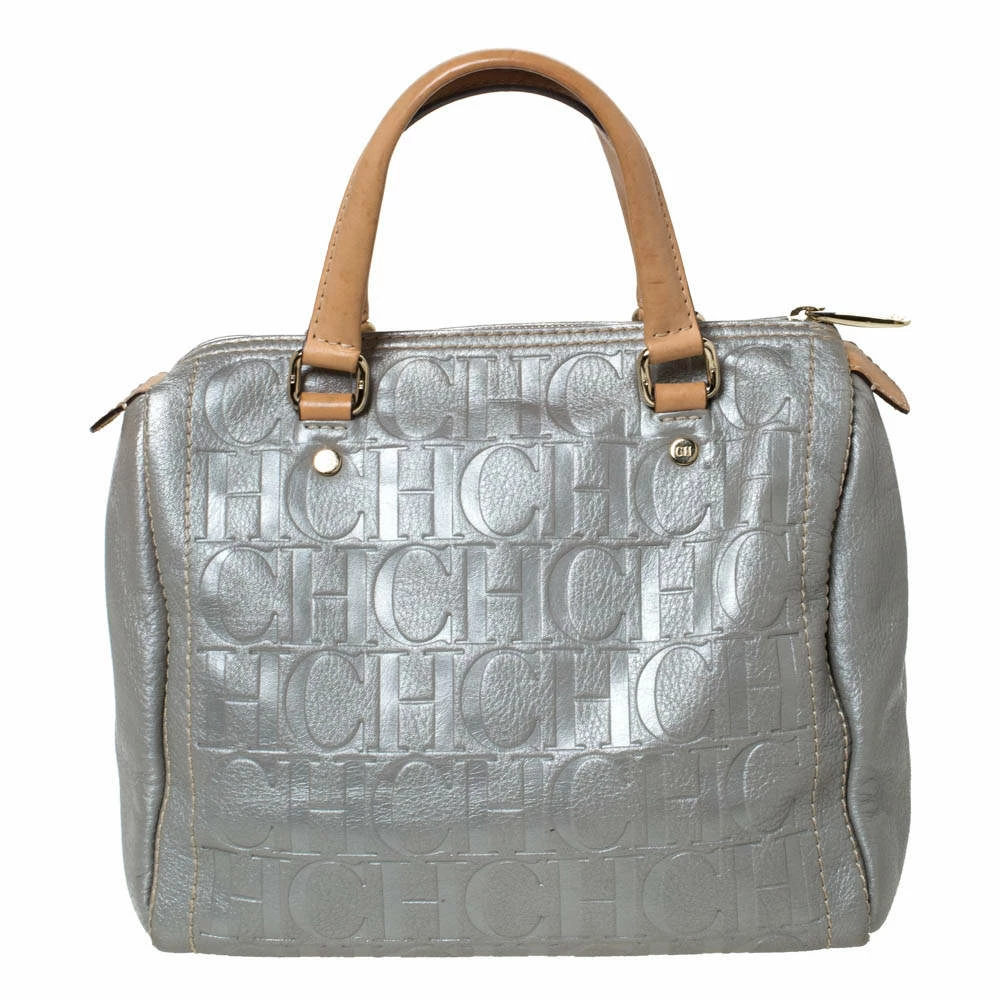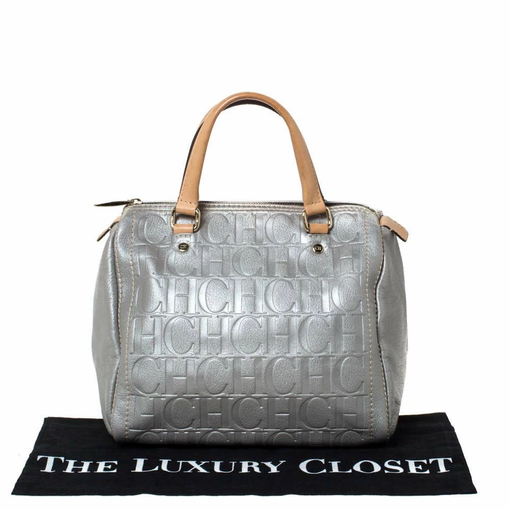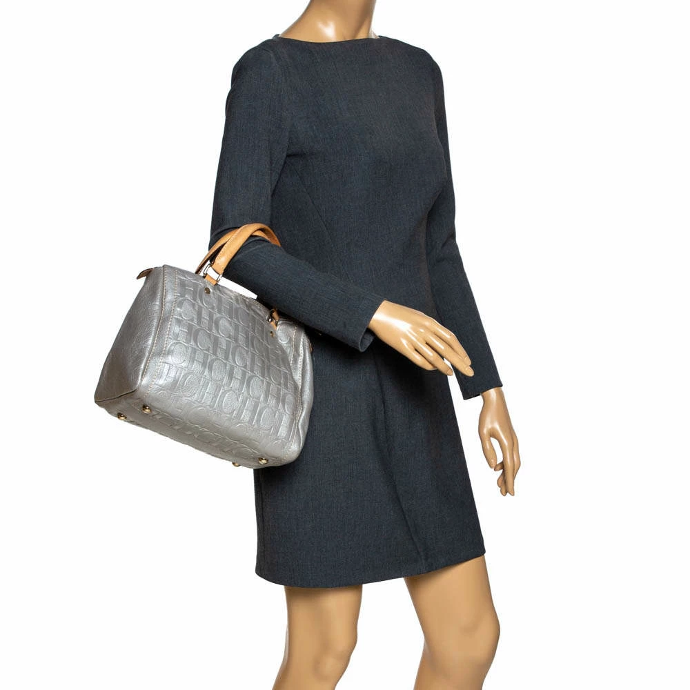 A truly elegant piece to add to your collection, this Andy Boston Bag by Carolina Herrera comes crafted from metallic silver monogram-embossed leather and styled with neat stitch detailing. It features a top zip closure, two handles, protective metal feet, and a spacious interior to house your essentials. This bag is a creation for all occasions.