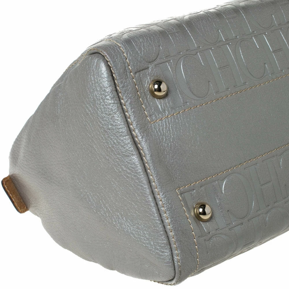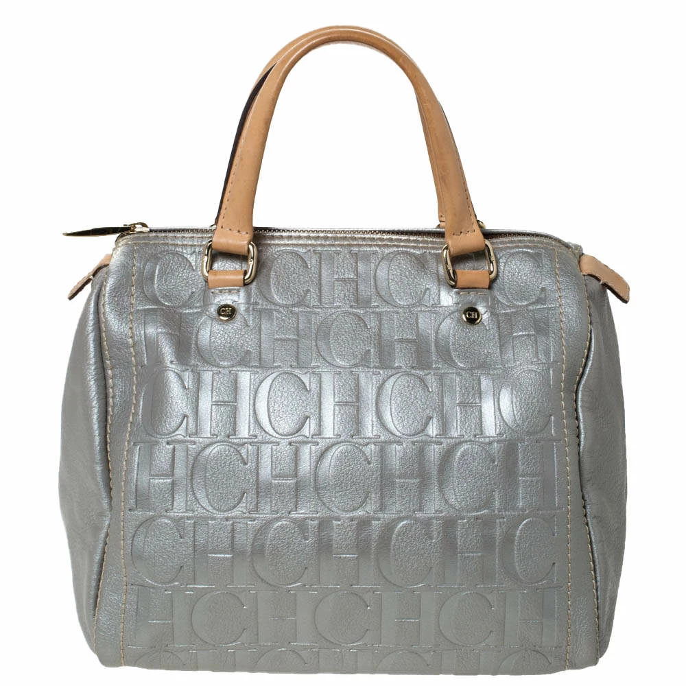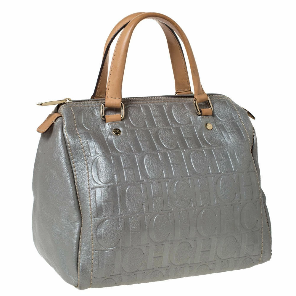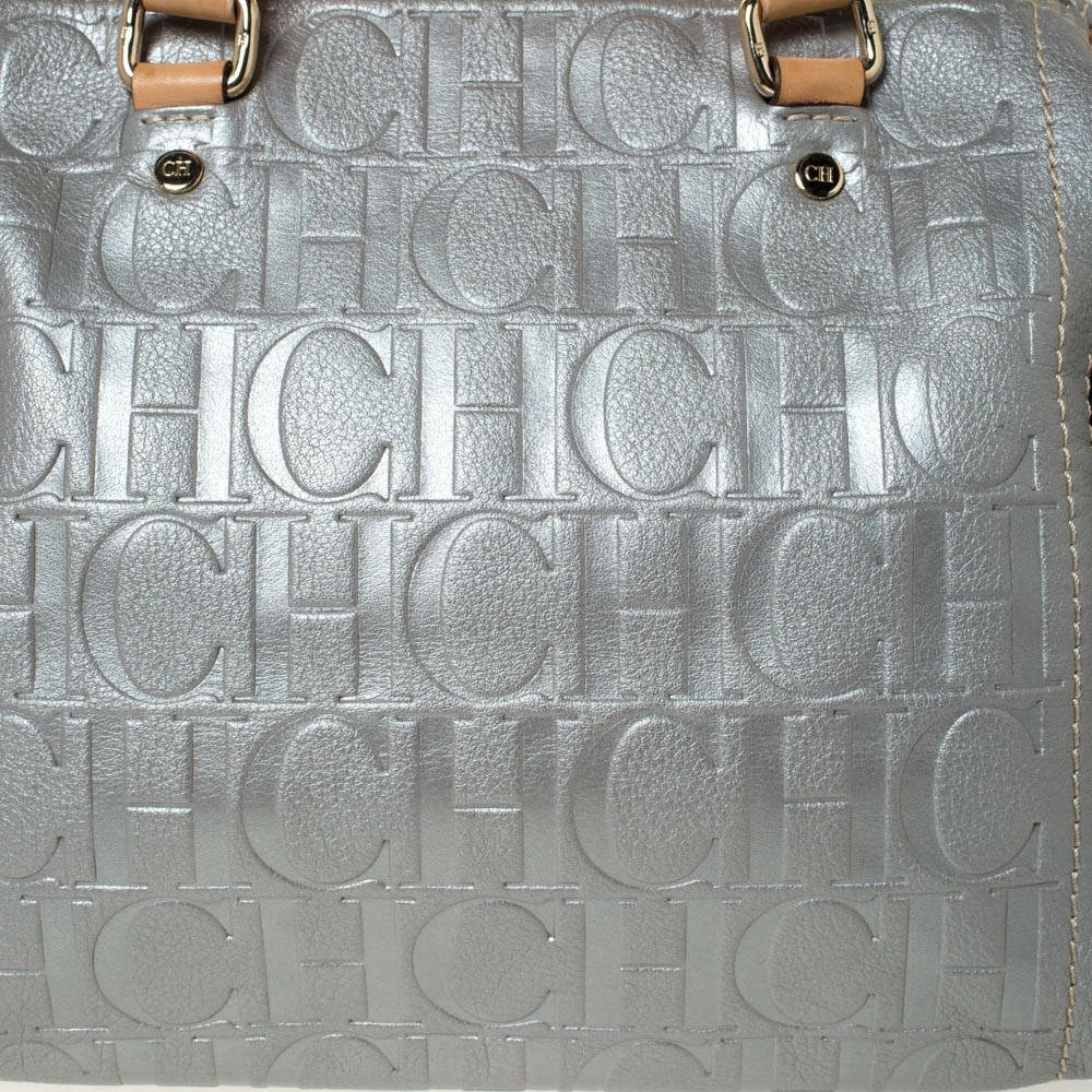 A truly elegant piece to add to your collection, this Andy Boston Bag by Carolina Herrera comes crafted from metallic silver monogram-embossed leather and styled with neat stitch detailing. It features a top zip closure, two handles, protective metal feet, and a spacious interior to house your essentials. This bag is a creation for all occasions.