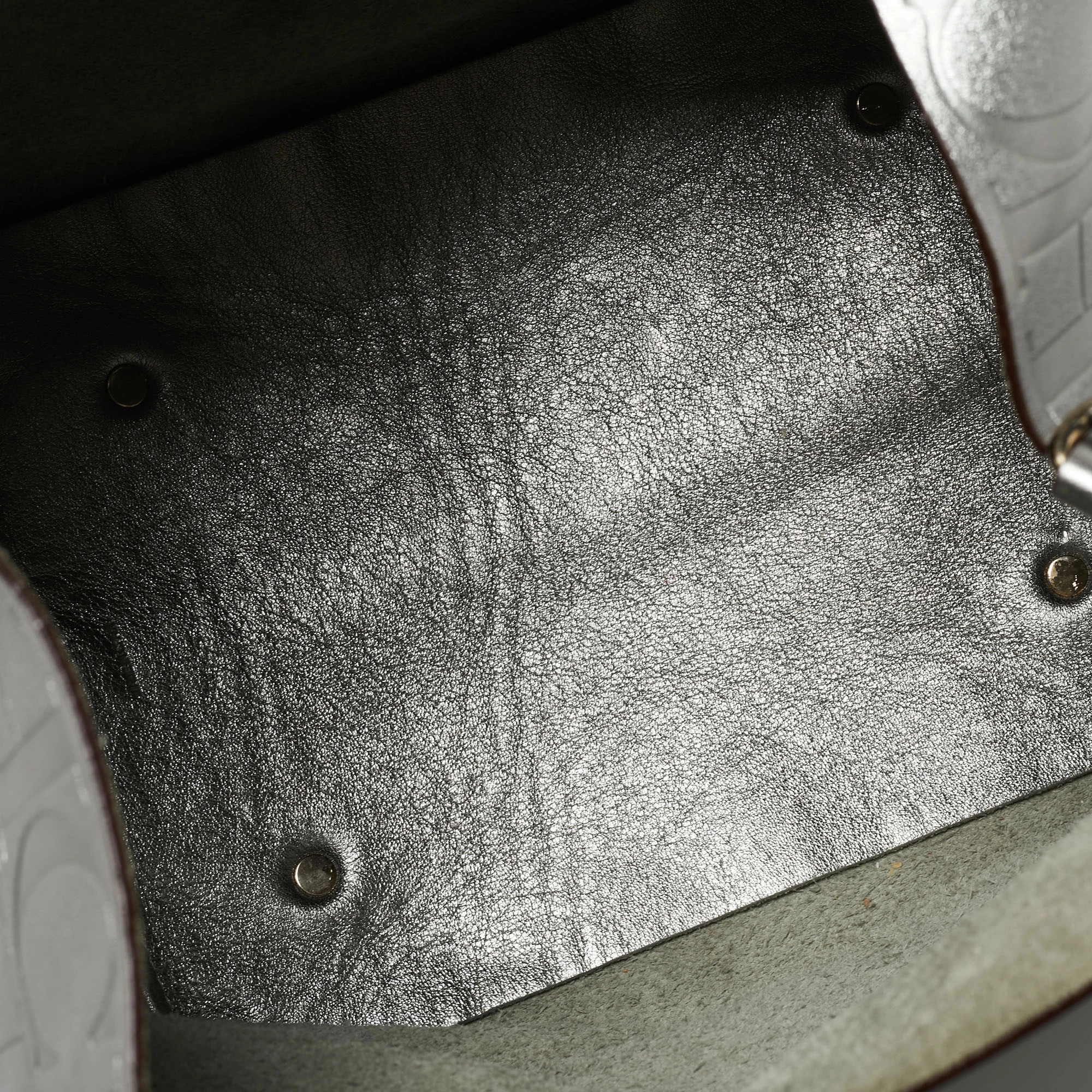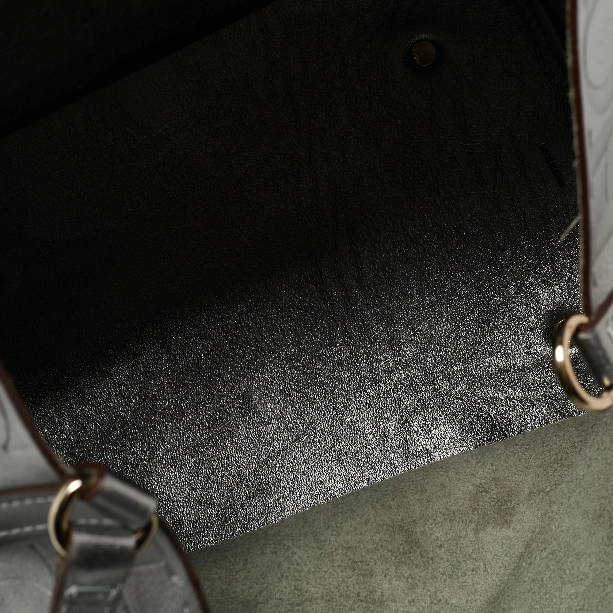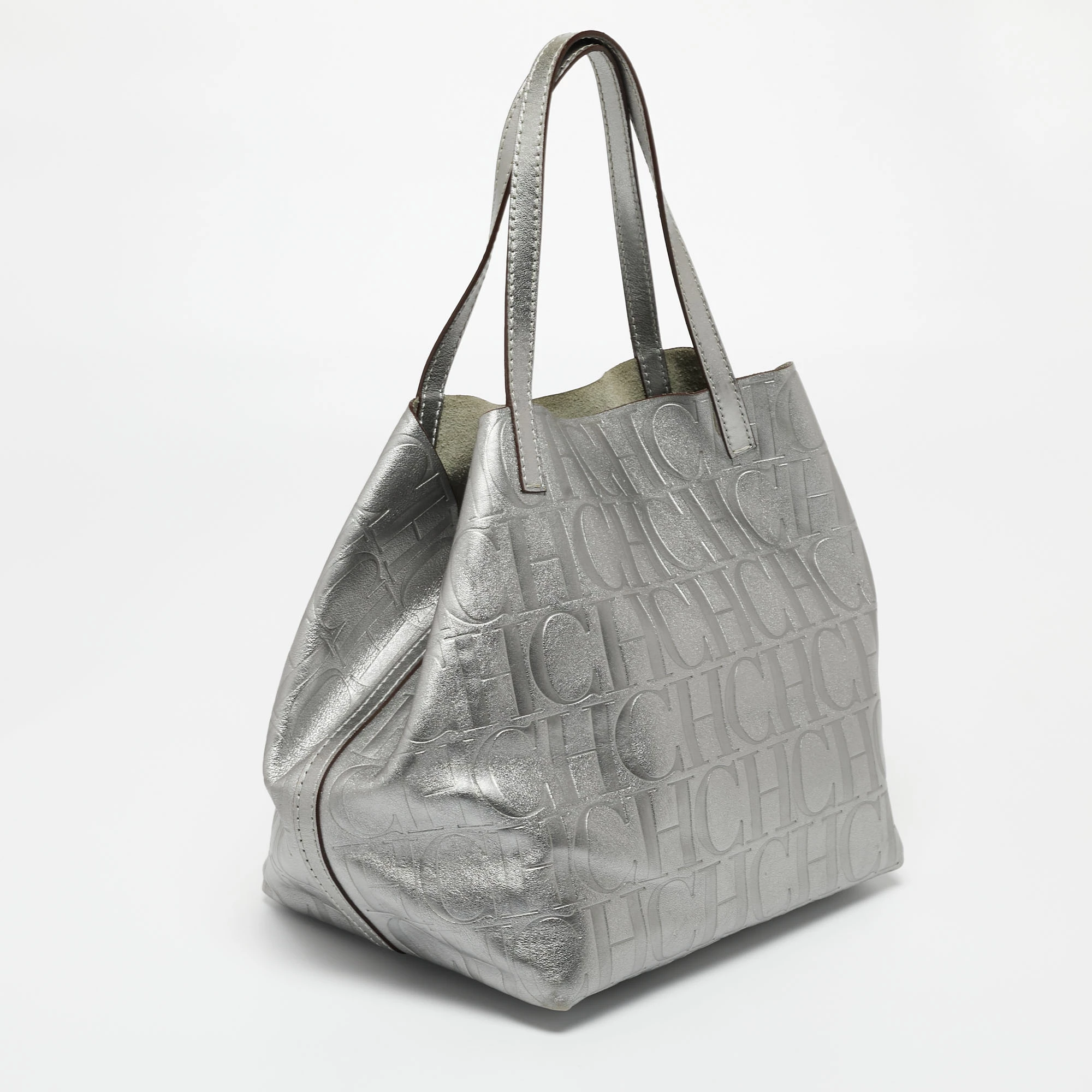 How classy is this Matryoshka tote from Carolina Herrera! Overlaid with metallic silver Monogram leather on the exterior and decorated with gold-toned fittings, this tote looks nothing but elegant. It has dual handles and a roomy suede-lined interior. Grab this creation now!