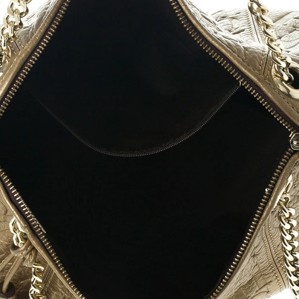 From the Poppy 2012/2013 collection, this sophisticated shoulder bag by Carolina Herrera will add plenty of glamour to your wardrobe. Crafted from gold leather, it also features tassels and shoulder straps. Its large interior is lined with black canvas and features a zip pocket.