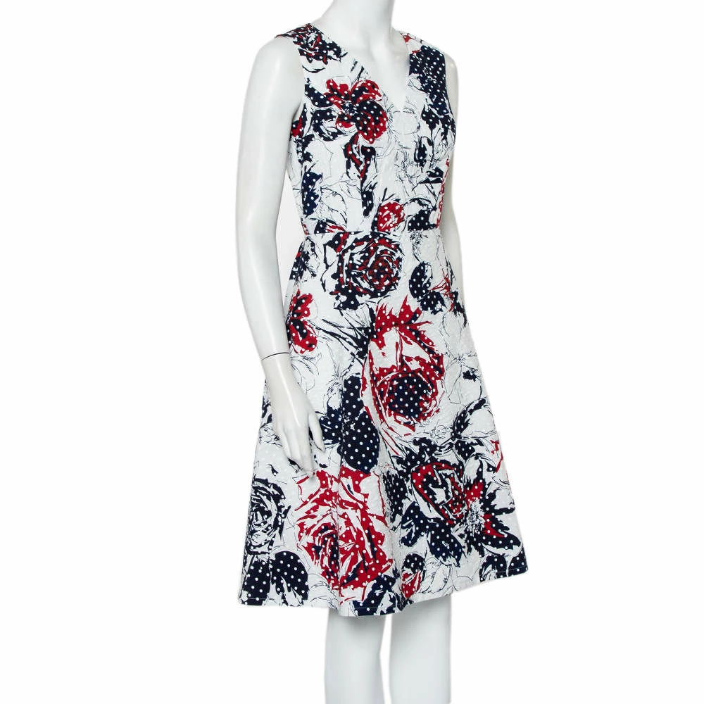 A dress like this one from Carolina Herrera creations will make you stop and stare. Make a worthy addition to your collection with this stylish multicolored dress that is sure to become your favorite. It has a midi length, sleeveless silhouette, and a comfortable fit.