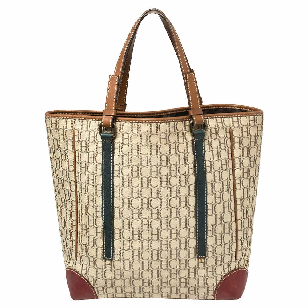 This tote by Carolina Herrera is just what you need to make a statement. Crafted from multicolored Monogram canvas, the stunning bag is enhanced with leather trims. It comes fitted with two handles, brass-tone hardware and a nylon-lined interior.