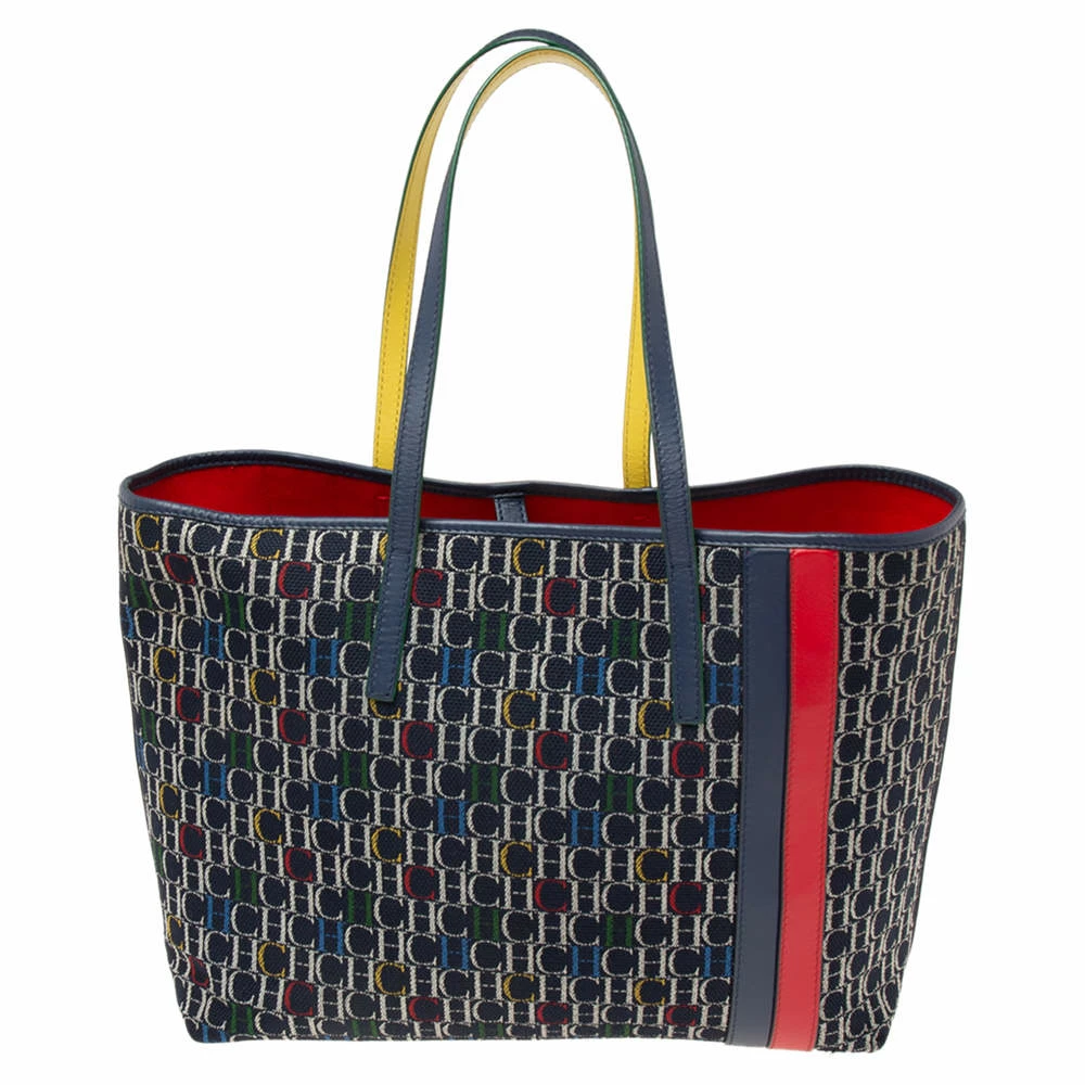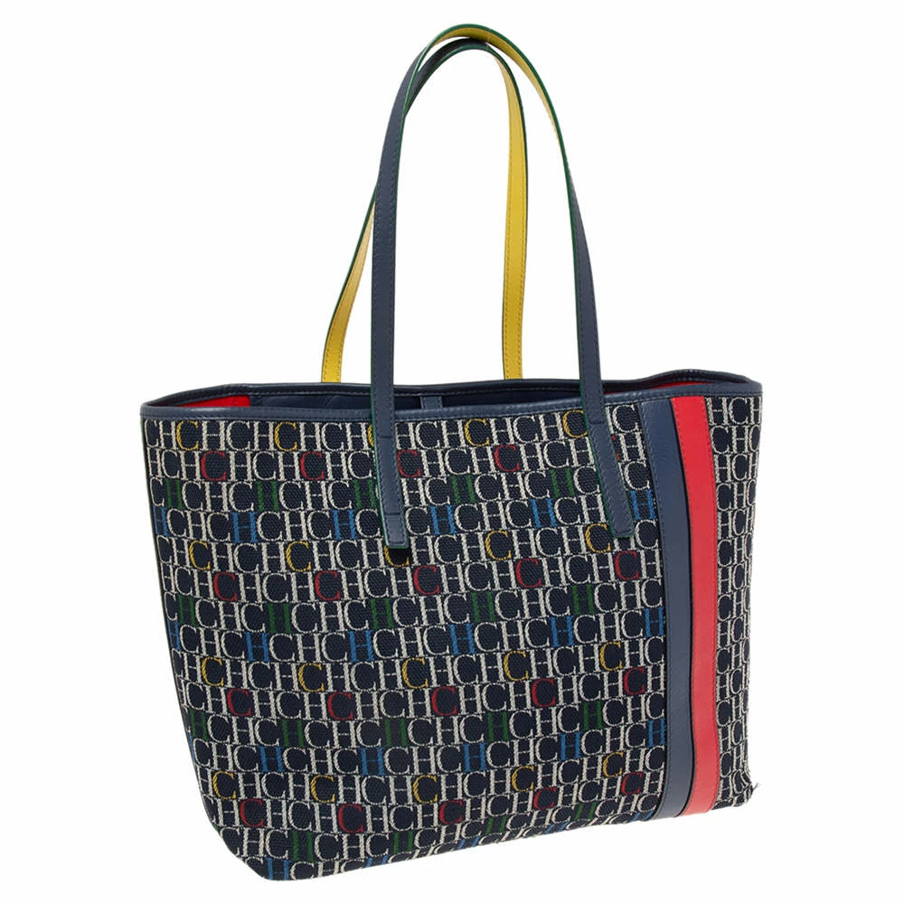 An absolute delight, this shopper tote is a CH Carolina Herrera creation. Crafted from monogram canvas and leather, the tote features a mix of shades, two handles, and a fabric interior sized perfectly to hold all your day’s essentials. This creation is a must-have.