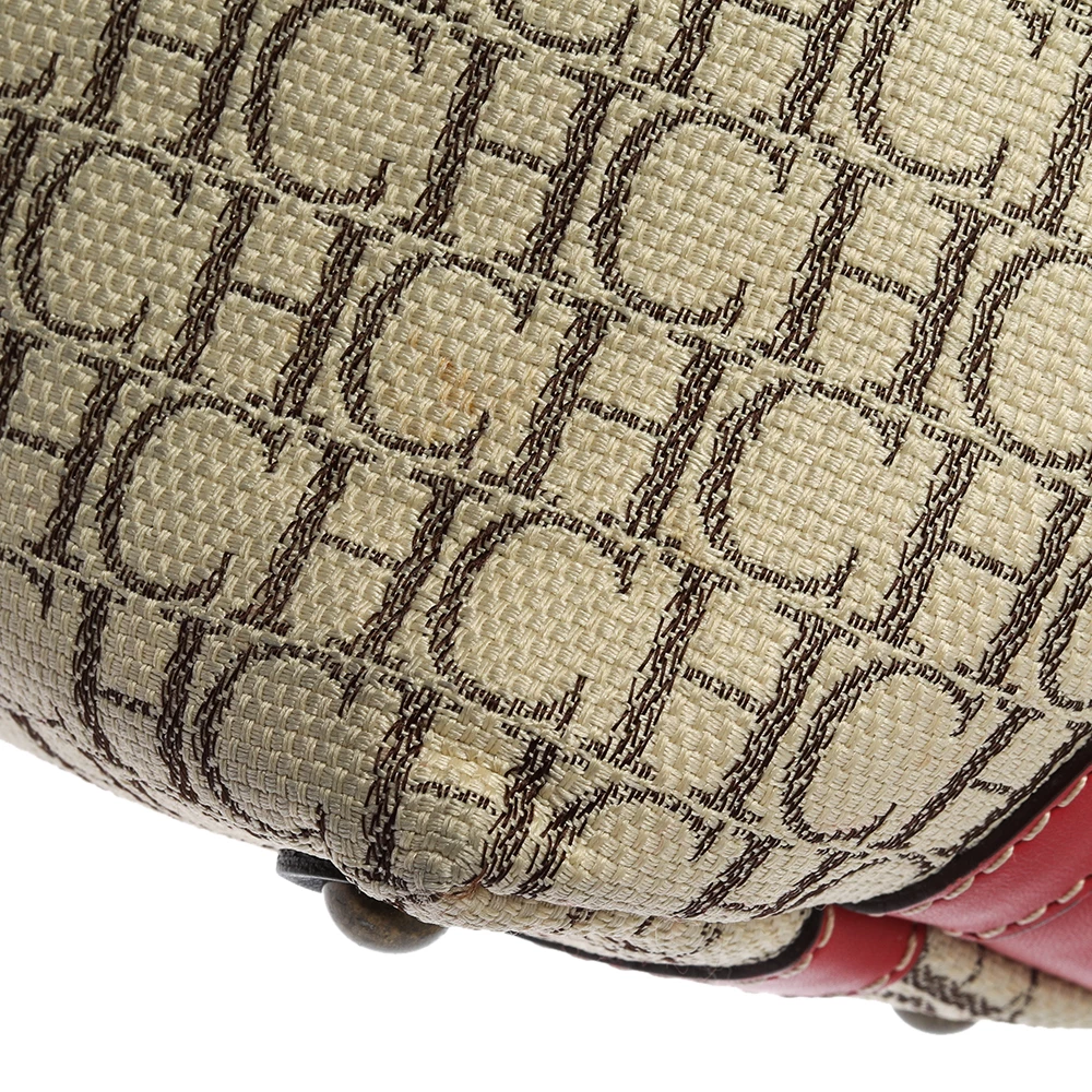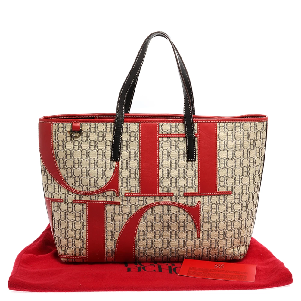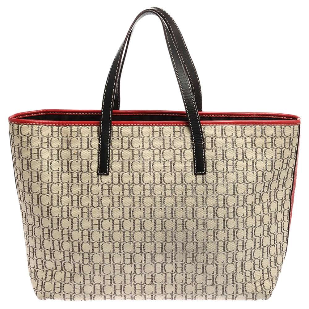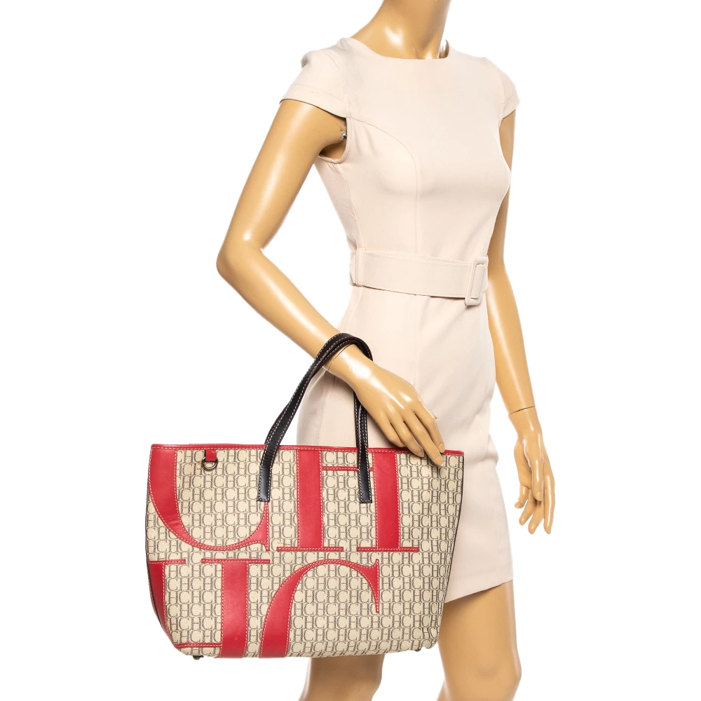 Carolina Herrera brings you this lovely tote that has been crafted from monogram canvas and detailed with leather patches of CH. It has a well-sized fabric interior, and the bag is completed with two top handles. This stylish tote is perfect for everyday use.