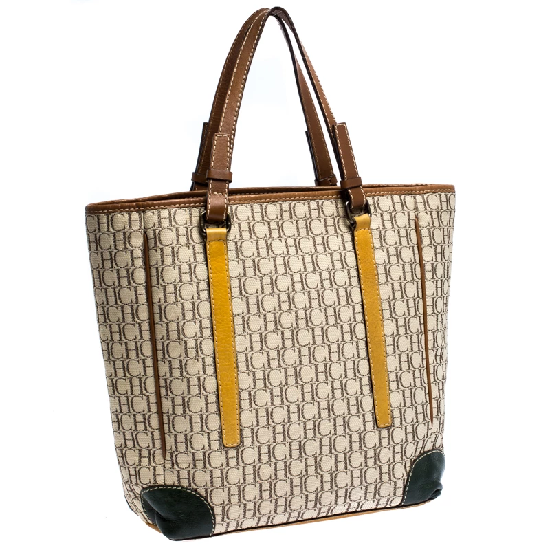 For all the Carolina Herrera fans out there, your search for that perfect bag ends here. Make heads turn with this tote crafted from monogram canvas and styled with neat leather detailing. It features two handles and a spacious fabric interior with a zip pocket and enough space to house your essentials. This bag works well for all occasions.