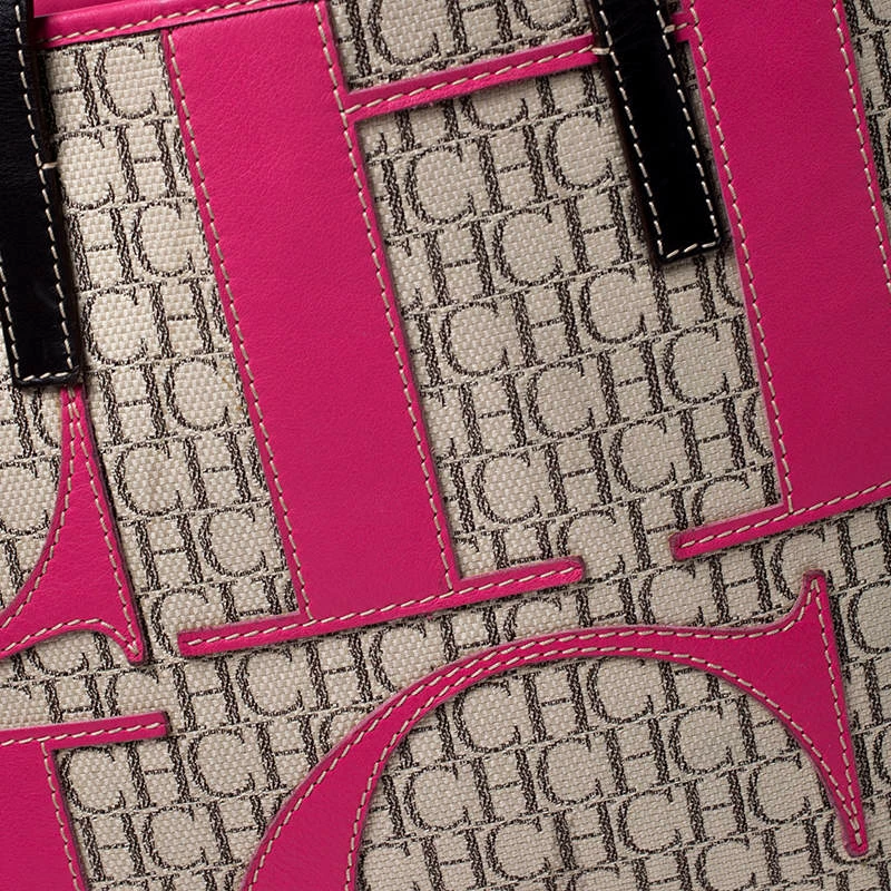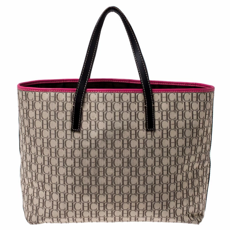 Carolina Herrera brings you this lovely tote that has been crafted from monogram canvas and detailed with patches of CH. It has a well-sized fabric interior, and the bag is completed with two top handles. This stylish tote is perfect for everyday use.