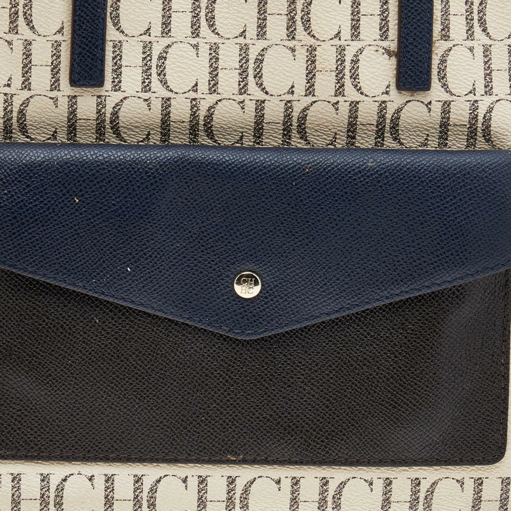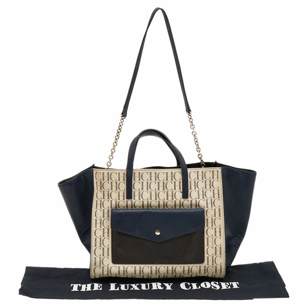 Carolina Herrera brings you this lovely tote that has been crafted from monogram coated canvas as well as leather and detailed with a pocket at the front. It has a well-sized fabric interior, and the bag is completed with two top handles and a shoulder strap. This stylish tote is perfect for everyday use.