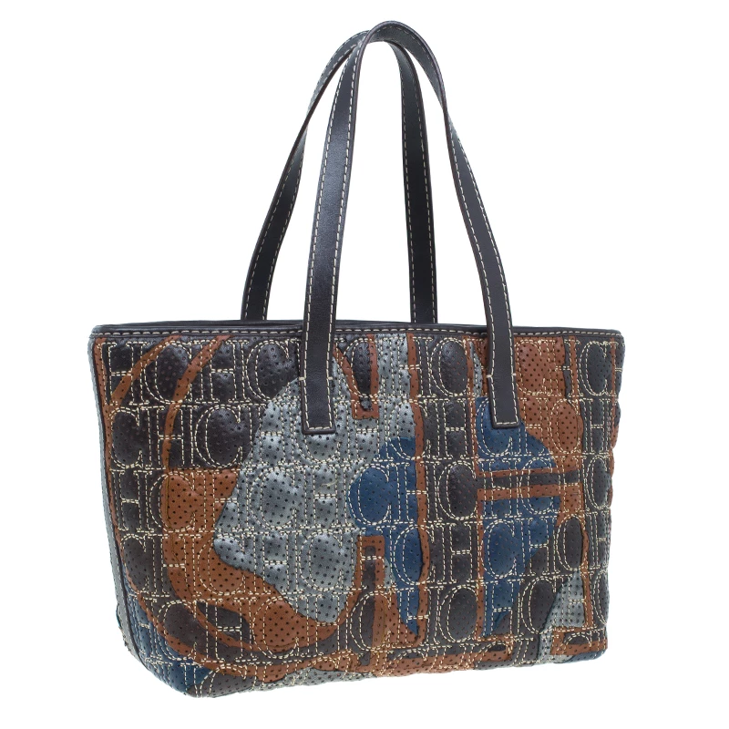 Add a touch of arty glamour to your outfit with this practical handbag by Carolina Herrera. It comes crafted from perforated multicolored leather with Herrera’s monogram in contrasting stitch. This handbag is detailed with brown leather trim and top handles. The interior is lined with monogrammed canvas with a zip pocket and a Carolina Herrera label.