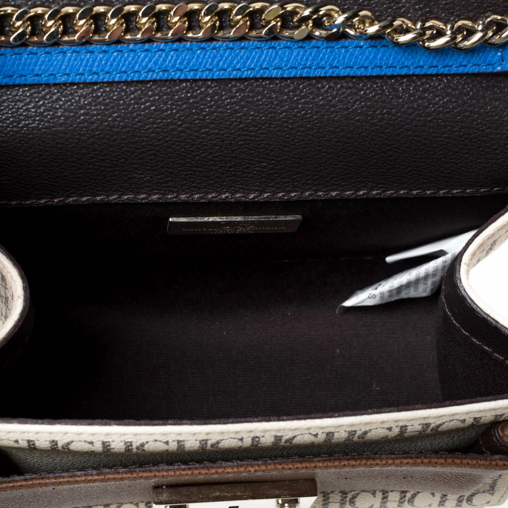 This adorable Carry on Bandoulière bag by Carolina Herrera is crafted from signature coated canvas and soft leather. Highlighted with a gold-tone lock on the flap, it features a smart shape and comes with a chain-link strap and a canvas-lined interior.