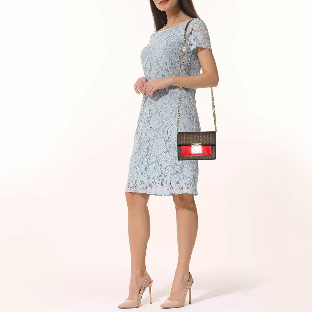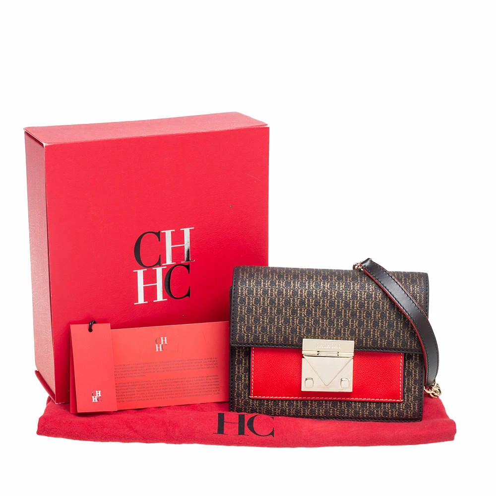 This bag from the House of Carolina Herrera is a bag you would pick season after season. It has been crafted from leather & monogram coated canvas and features a contrasting patch at the front. It comes with a shoulder strap. The bag has a refined look and a convenient size.