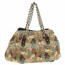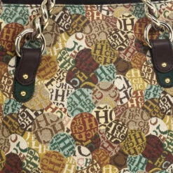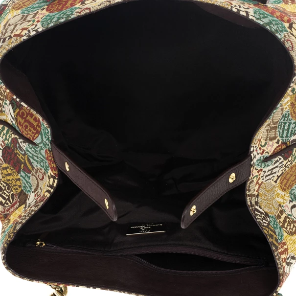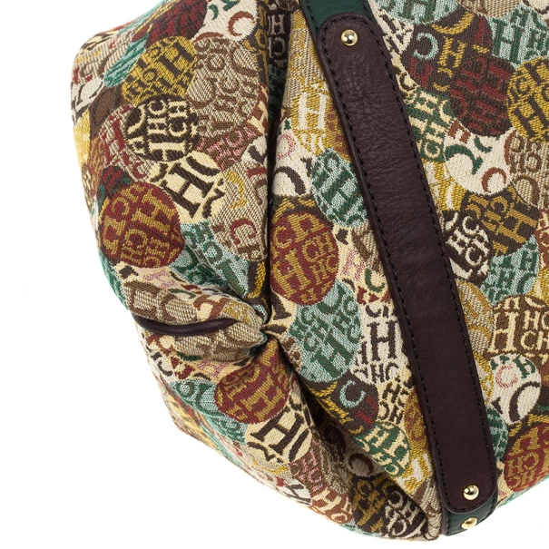 Sling on this bright tote by Carolina Herrera when you want to add color to your look! This bag is made from multicolor printed canvas with the signature CH monogram with brown leather trim. You can carry this bag by using its chainlink handles and store your belongings in its ample lined interior. The interior houses one zipper pocket.