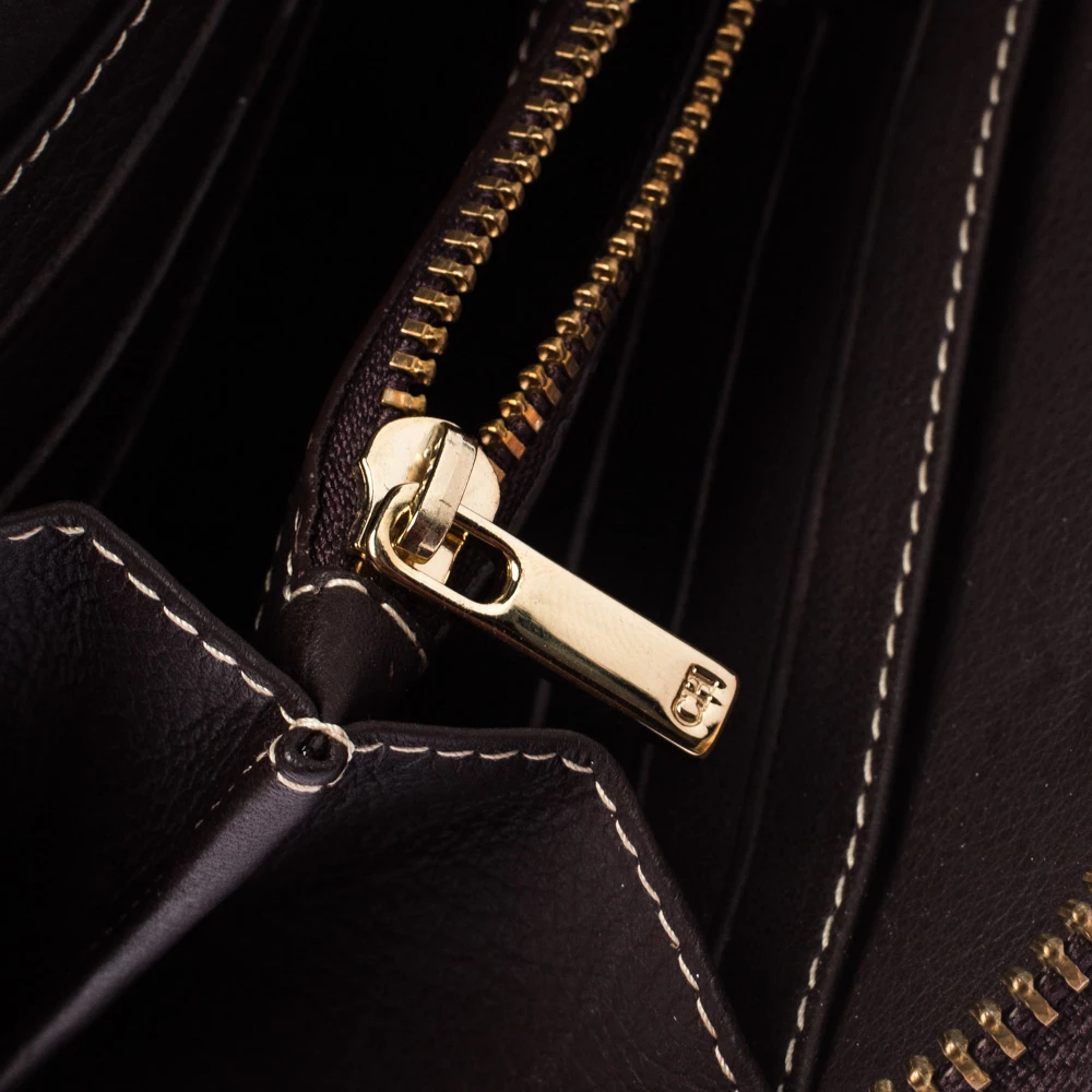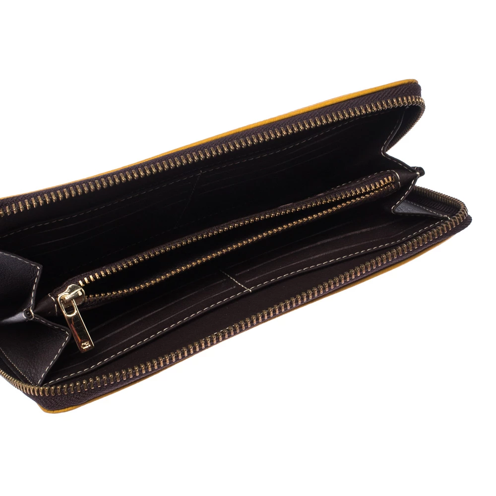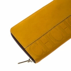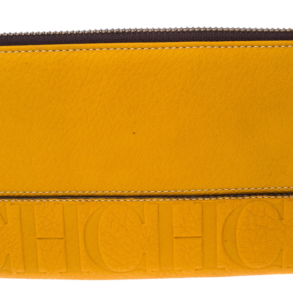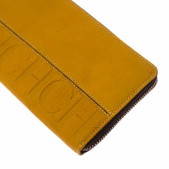 This wallet from Carolina Herrera is one simple creation you must own. It has been crafted from leather and flaunts monogram embossing on the exterior and a mustard shade. It also comes equipped with a zip closure that opens to reveal multiple card slots, open compartments, and a zipped pocket.
