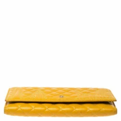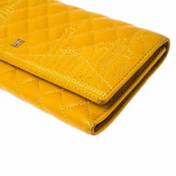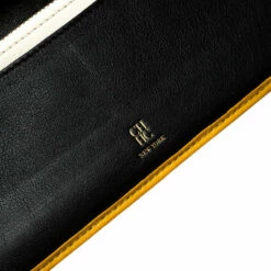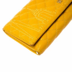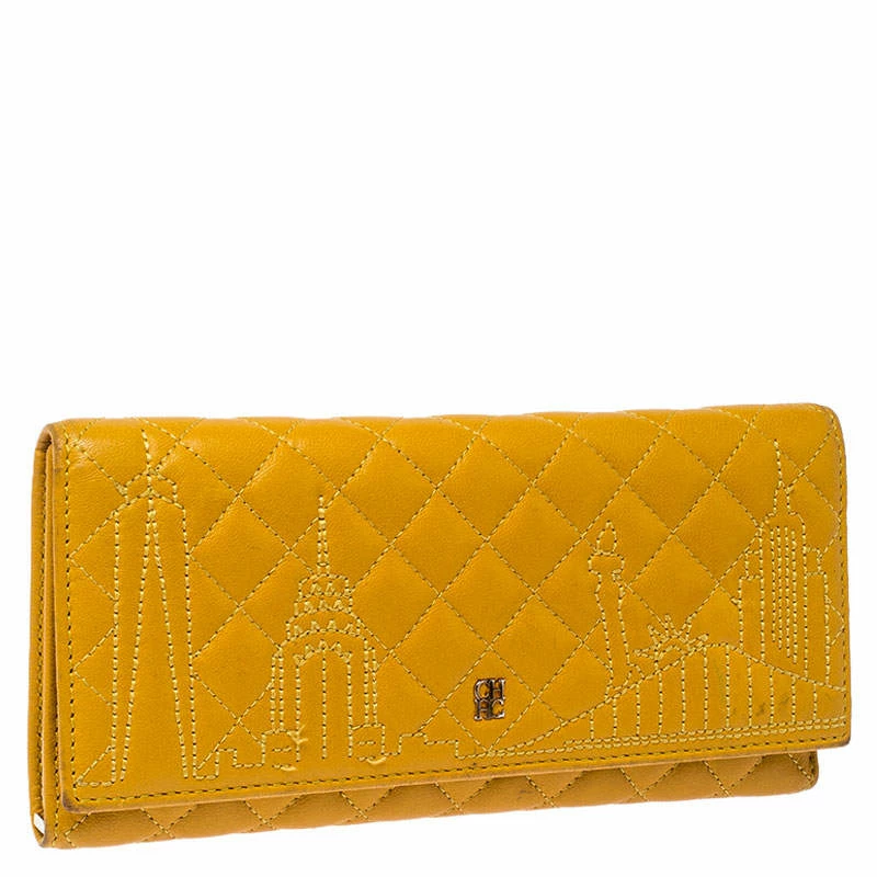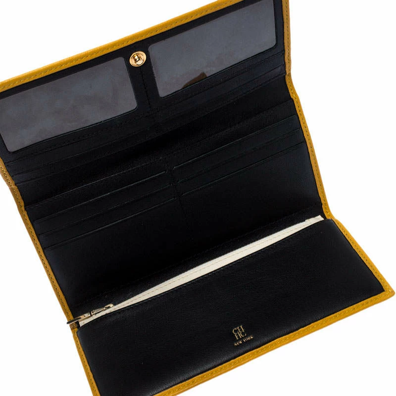 The durable leather design of this wallet makes for the best accessory. Bringing elegance and class to your daily life, this wallet from Carolina Herrera is stylish and convenient. Add a touch of chic style to your wardrobe with this mustard wallet.