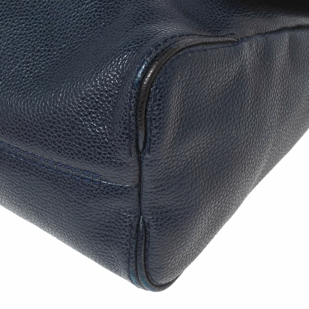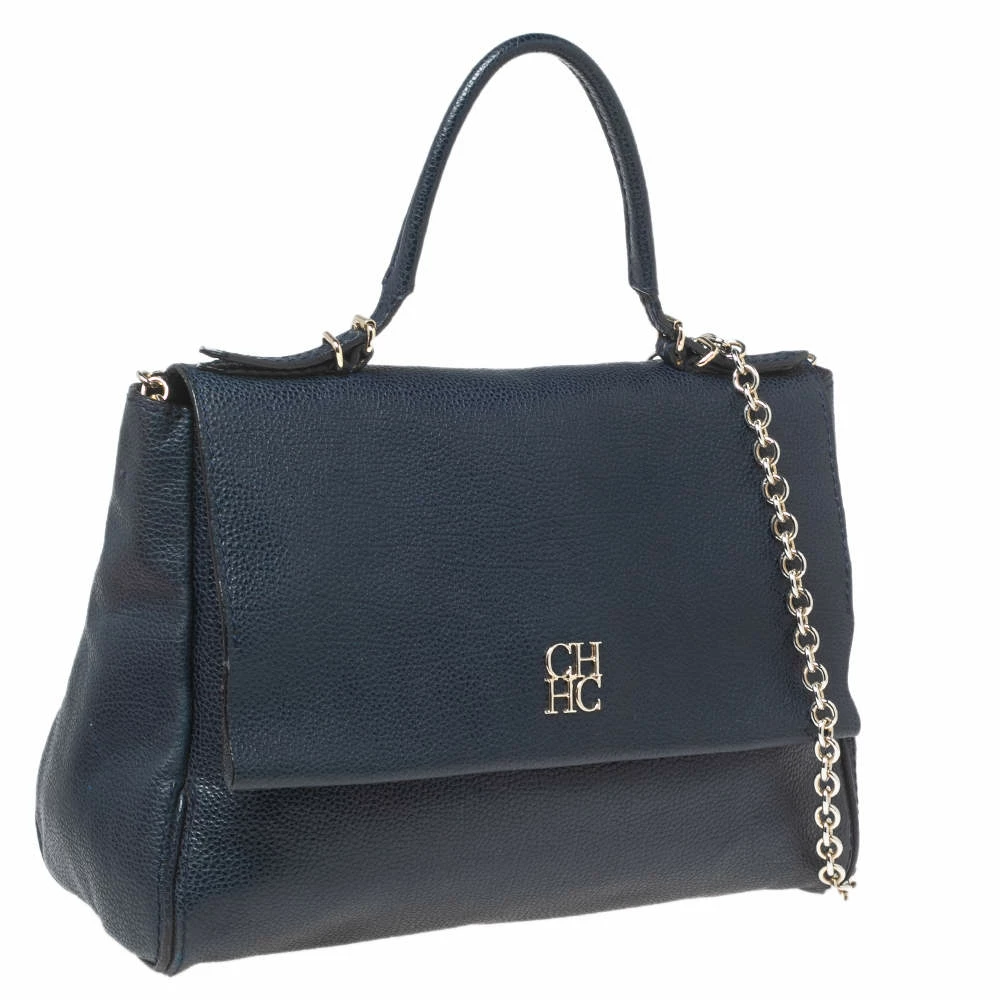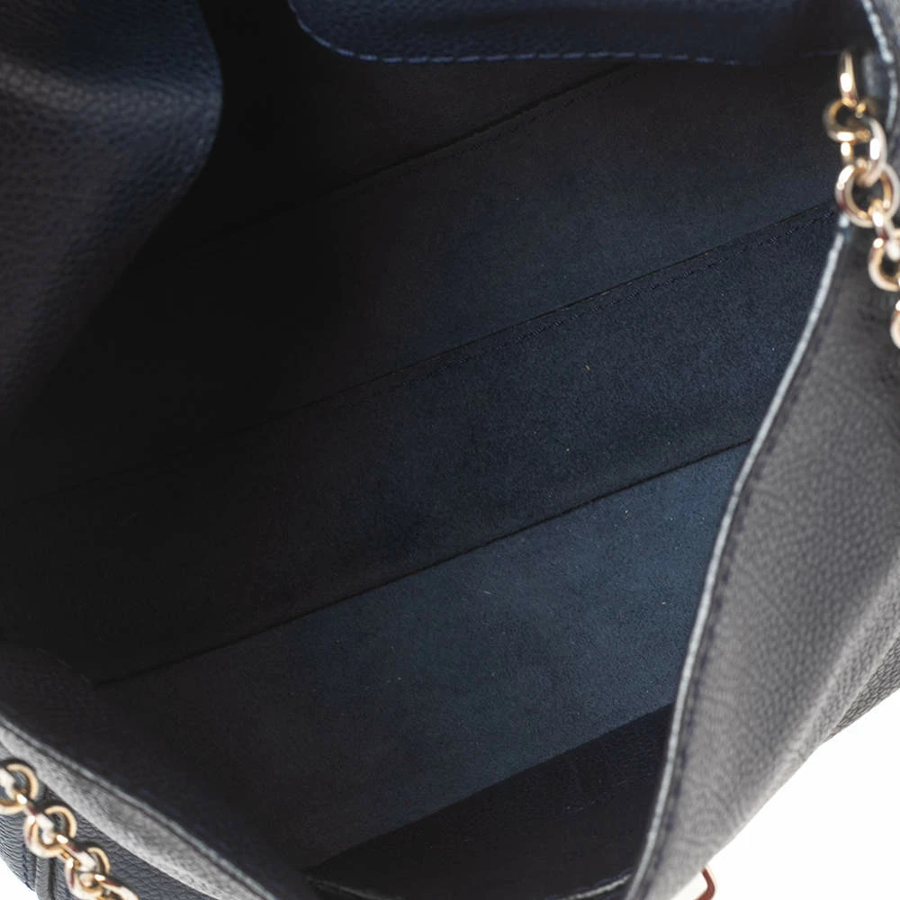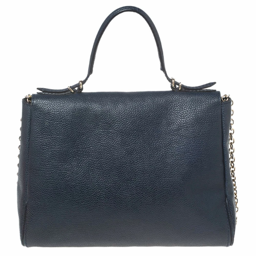 This Minuetto bag from the house of Carolina Herrera is something you would go to season after season. It has been crafted from a navy blue leather body and features a smooth flap style. It comes with a chain shoulder strap in addition to a flat top handle. It has a subtle slouch to the structure and opens to a spacious interior that can easily hold your day to evening essentials.
