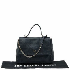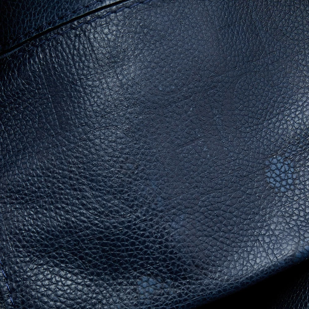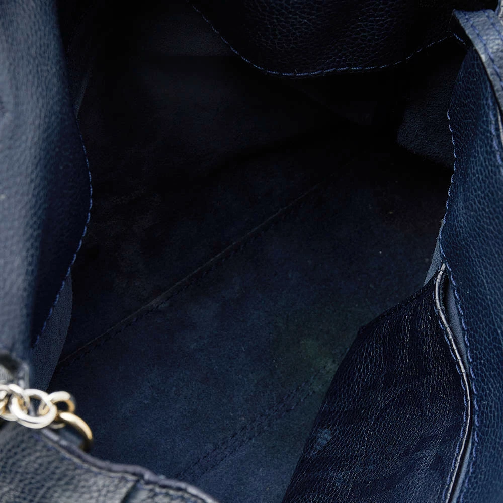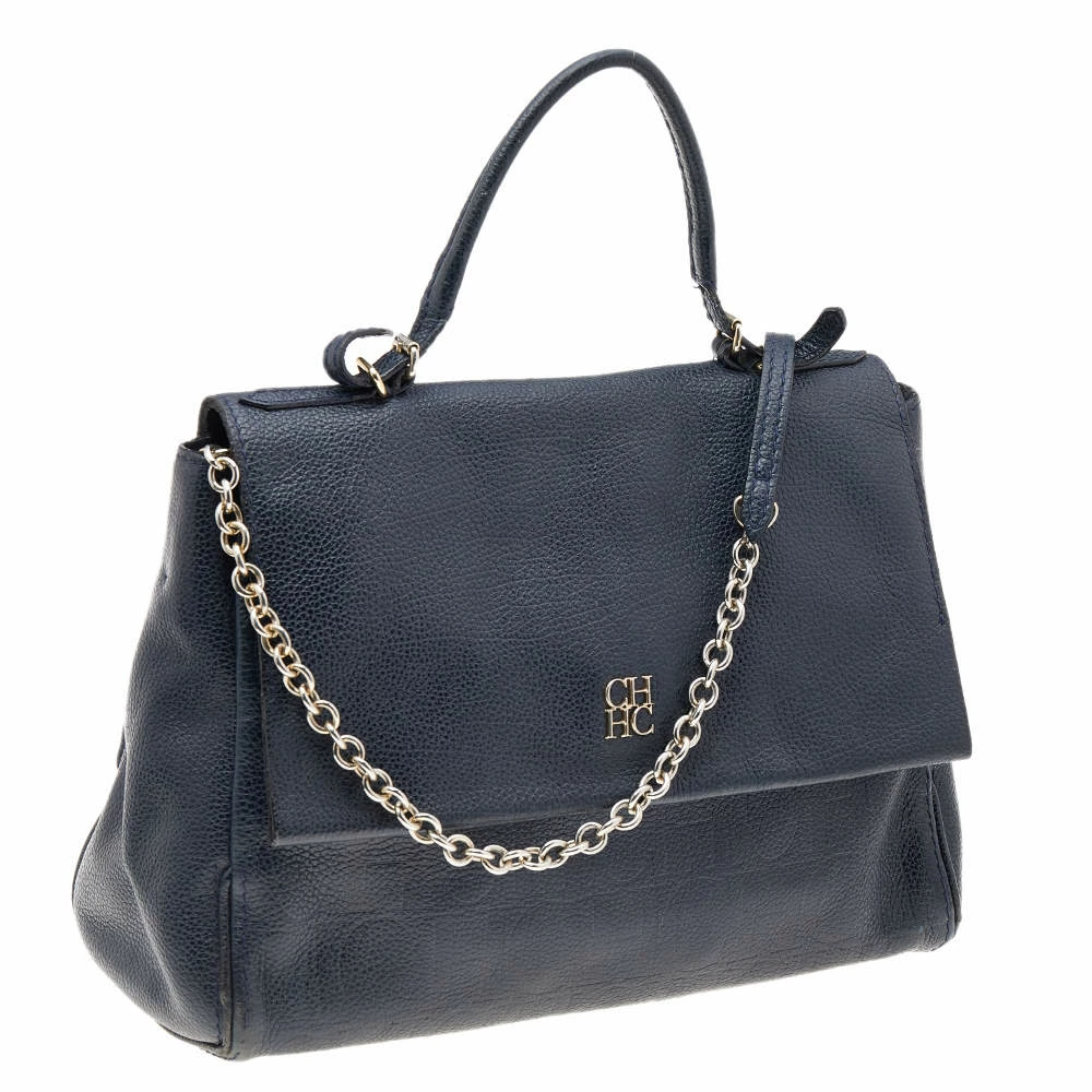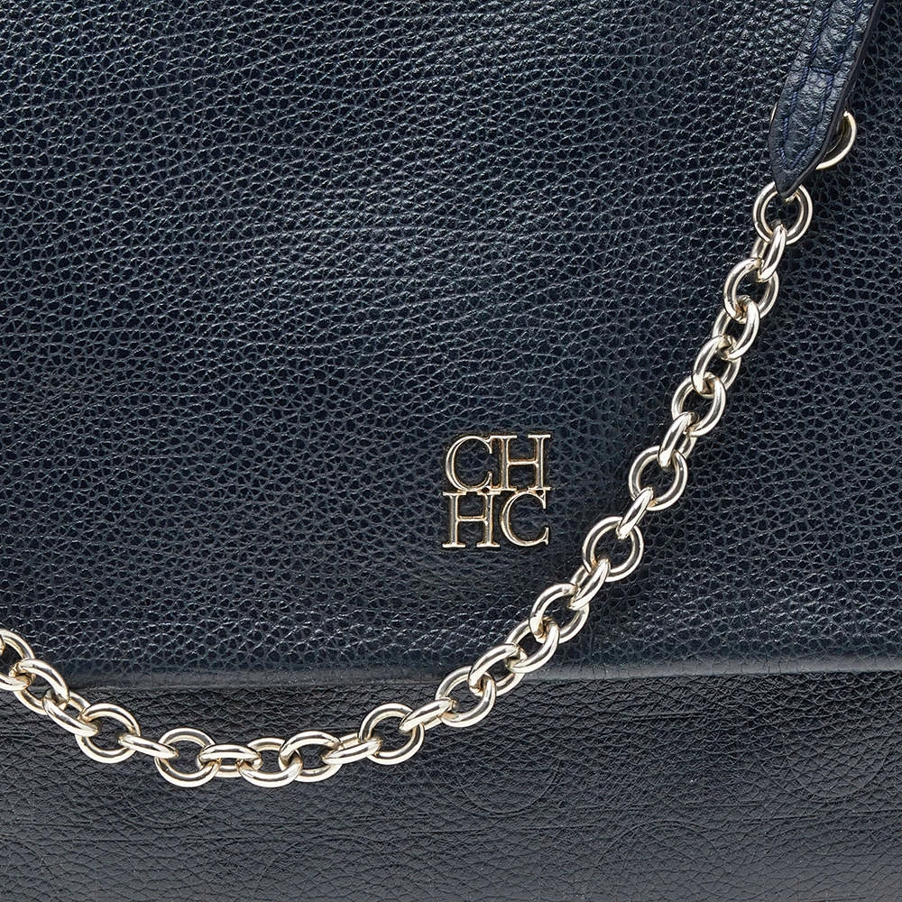 This Minuetto bag from the house of Carolina Herrera is something you would go to season after season. It has been crafted from a versatile navy blue leather body and features a smooth flap style. It comes with a chain shoulder strap in addition to a flat top handle. It has a subtle slouch to the structure and opens to a spacious interior that can easily hold your day to evening essentials.