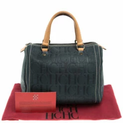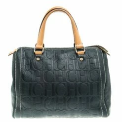 A truly posh and elegant piece to add to your collection. This Andy Boston Bag by Carolina Herrera is crafted from navy blue monogram leather and styled with neat stitch detailings. It features a top zip closure, two handles, protective metal feet, and a spacious suede interior to house your essentials. This bag works well for all occasions.