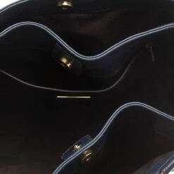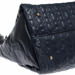 Carolina Herrera brings you this lovely tote that has been crafted from monogram-embossed leather. It has a well-sized fabric interior and the bag is completed with two top leather handles and an optional shoulder strap. This stylish navy blue tote is perfect for everyday use.