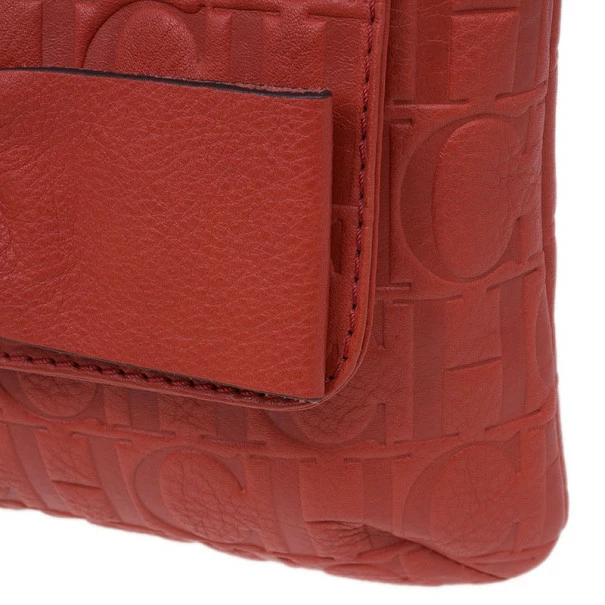 This Audrey bag from Carolina Herrera’s collection is a charming handbag that you will just love to flaunt. Crafted from orange CH monogram leather, the exterior is accented with a leather bow and embossed with the CH logo, and designed with a back pocket. Its engraved eyelets hold the oversized chain handle that features a shoulder pad and can be transformed into a shoulder strap. Lined with canvas, this beauty has a magnetic snap closure and includes one zipped pocket.Original Retail Price: US $786