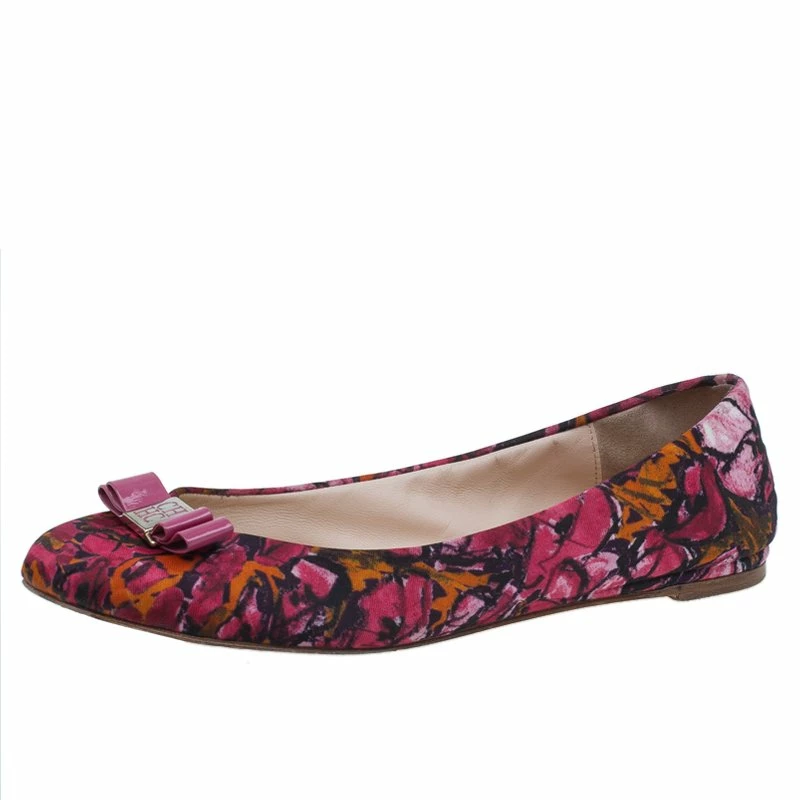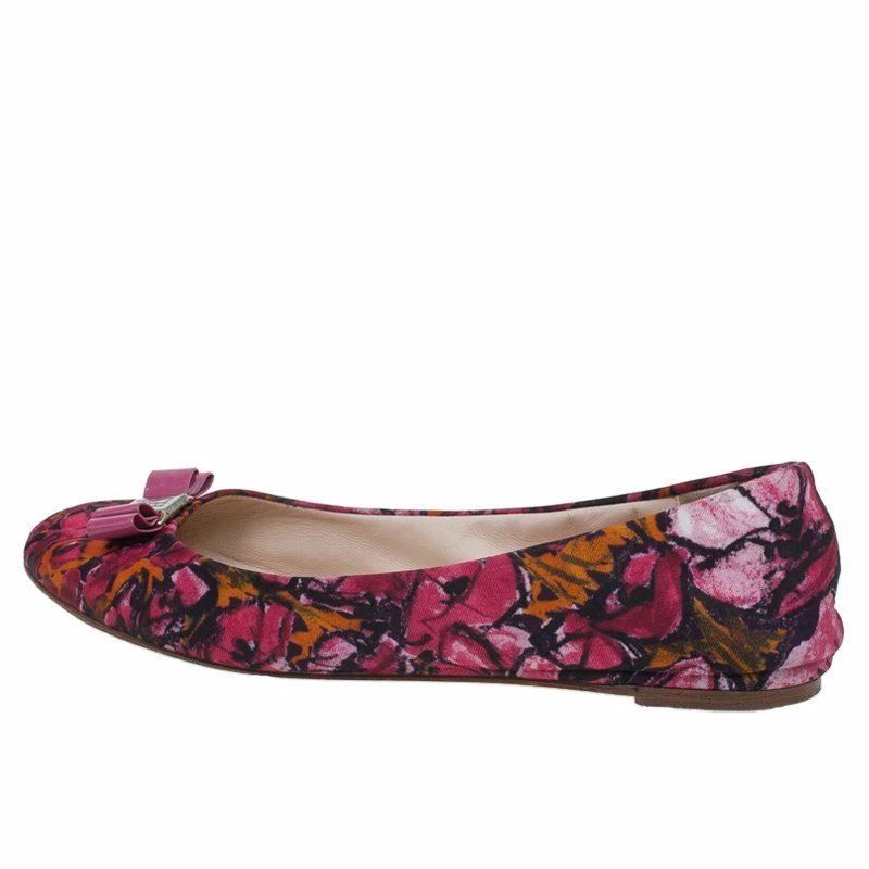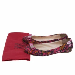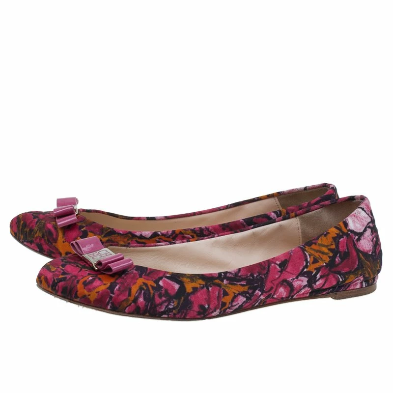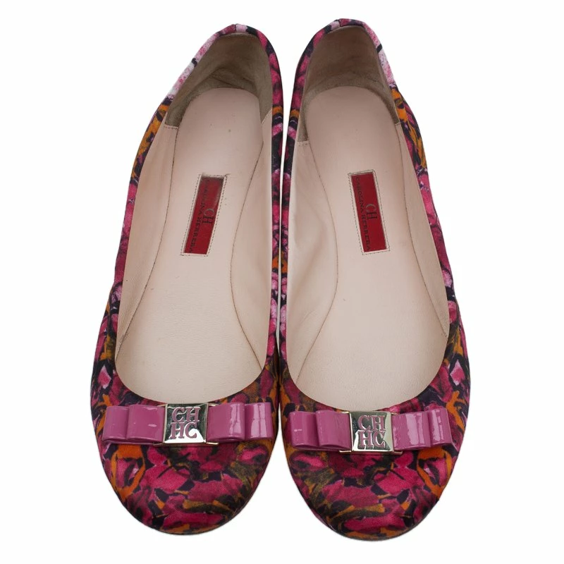 Ballet flats are an evergreen time savers when it comes to style but no time! These Carolina Herrera ballet flats have been crafted in pink floral textile and feature pink bows at the vamps with CH HC detailed buckles. Wear them with casual outfits for a chic look!