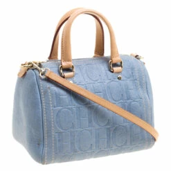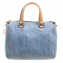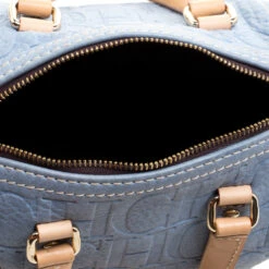 A truly posh and elegant piece to add to your collection. This Andy Boston Bag by Carolina Herrera is crafted from powder blue monogram leather and styled with neat stitch detailing. It features a top zip closure, two handles, a shoulder strap, and a spacious interior to house your essentials. This bag works well for all occasions.