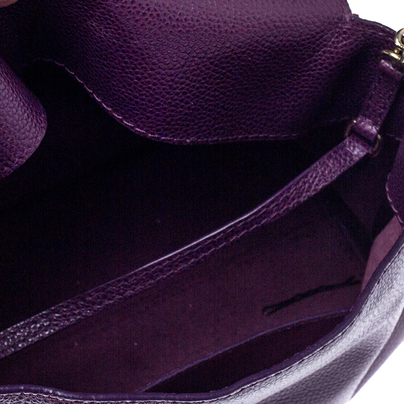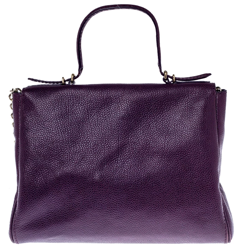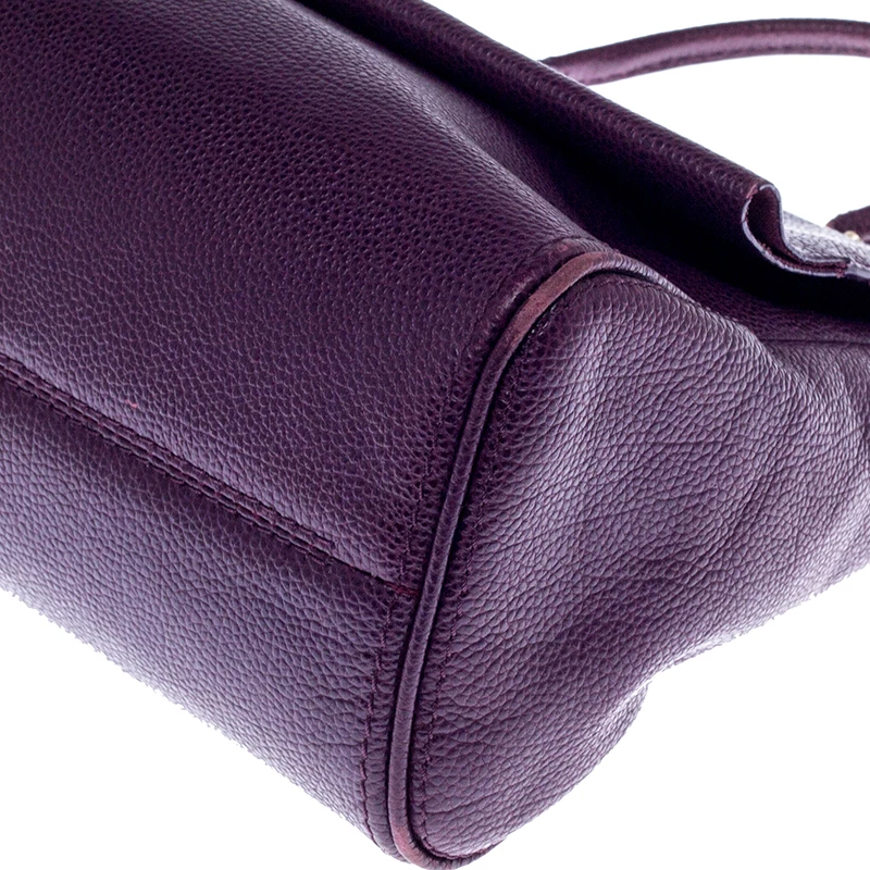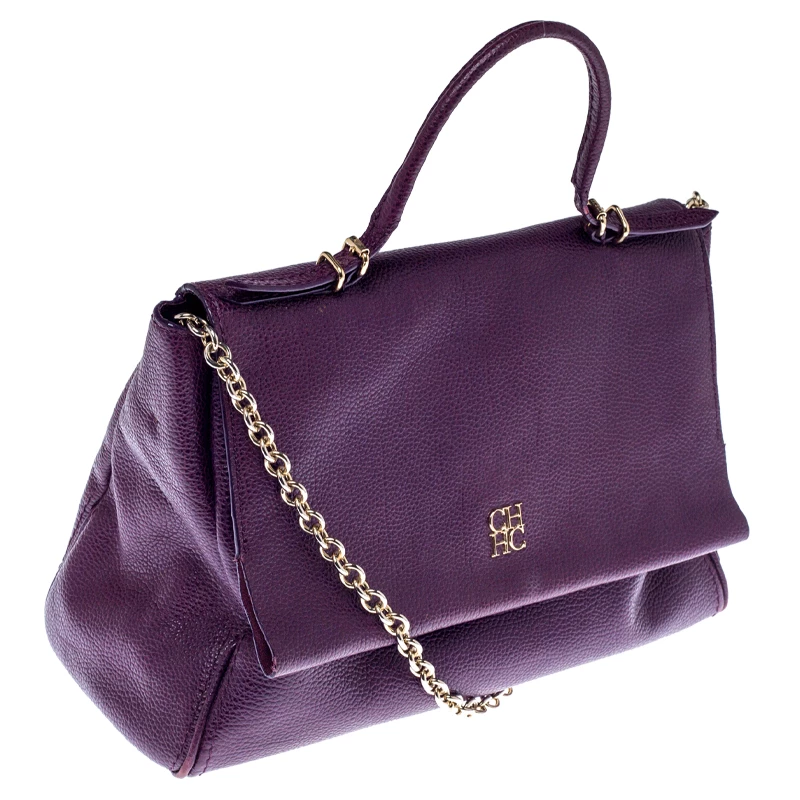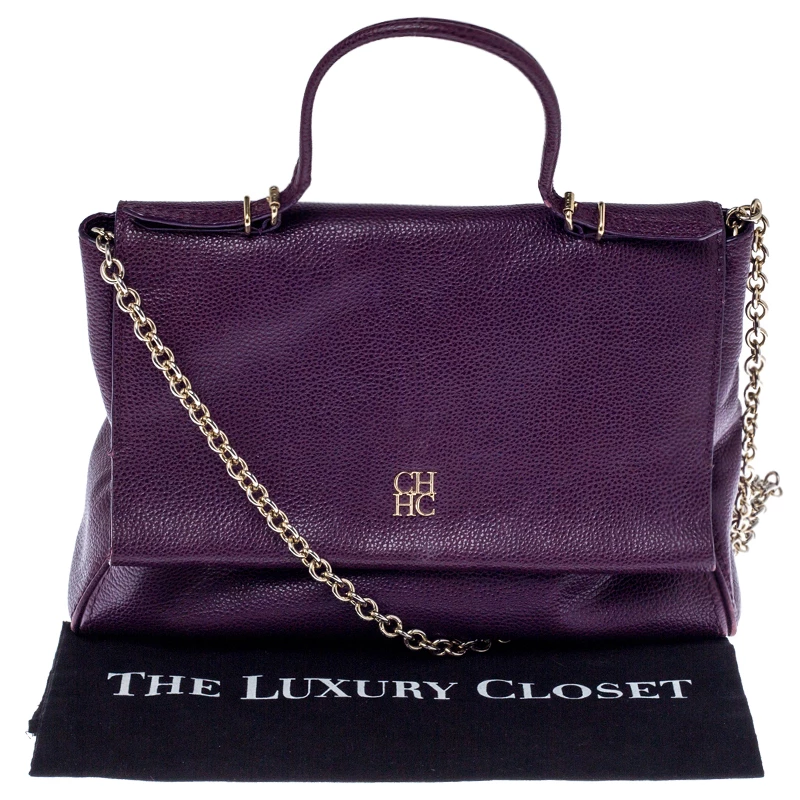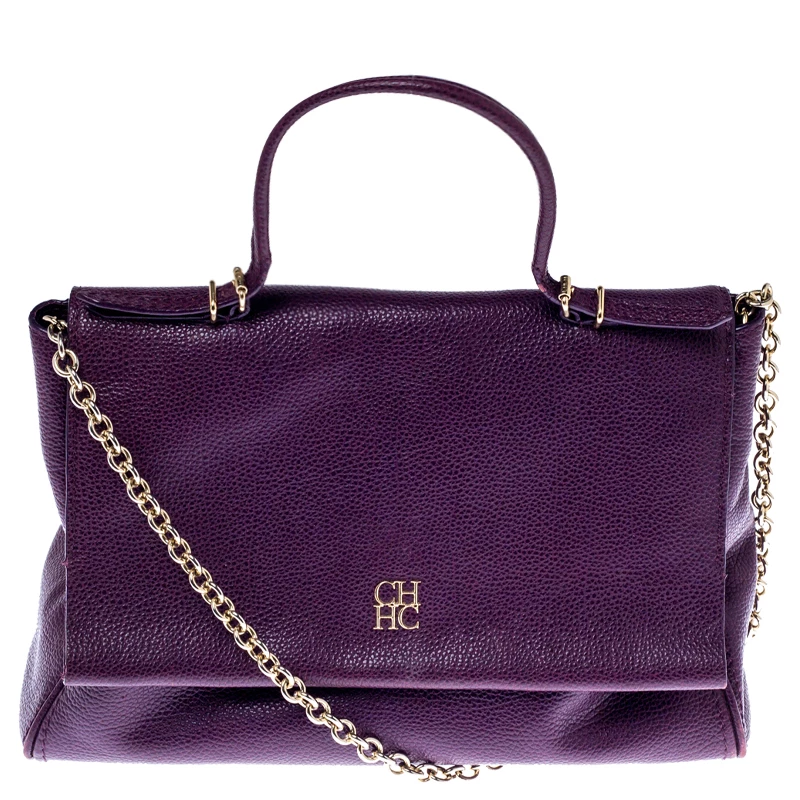 This Minuetto flap bag from the house of Carolina Herrera is something you would go to season after season. It has been crafted from purple leather and features a flap style. It comes with a chain shoulder strap in addition to a flat top handle. It has a subtle slouch to the structure and opens to a spacious interior that can easily hold your day to evening essentials.