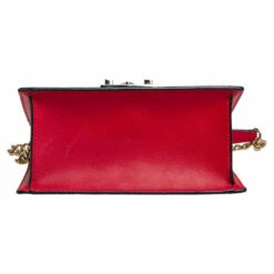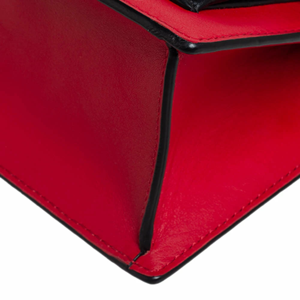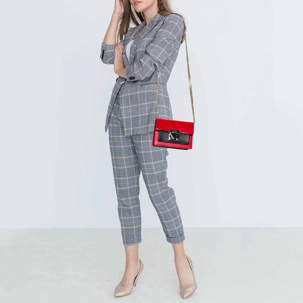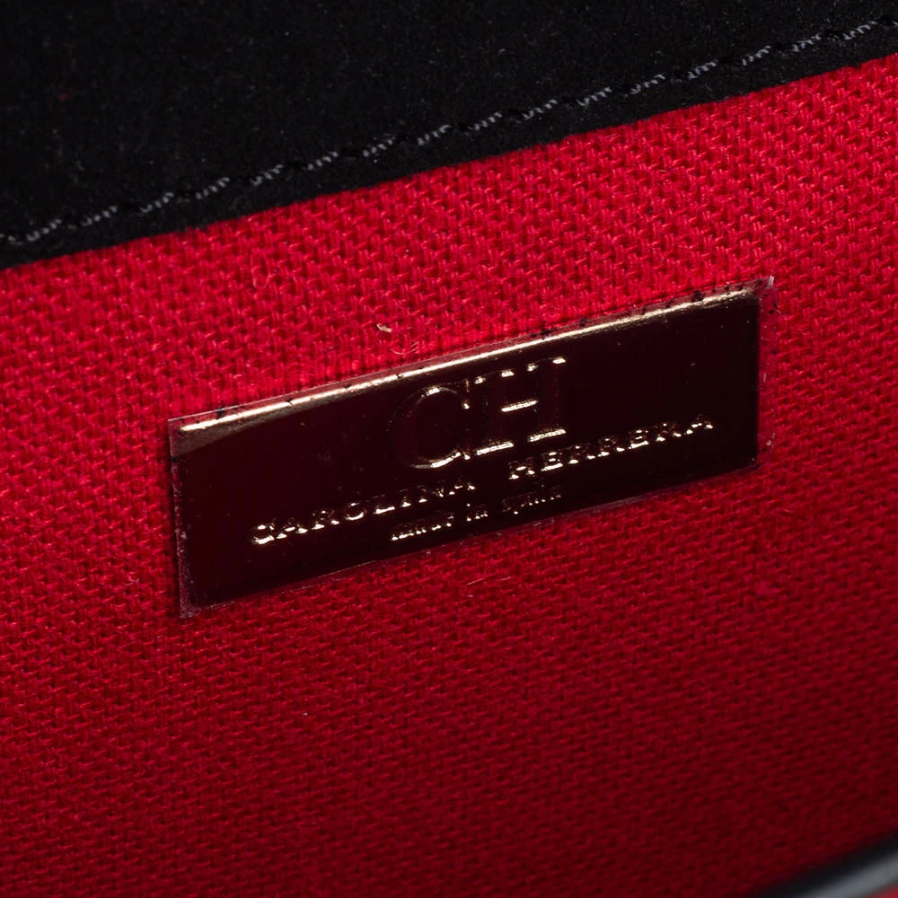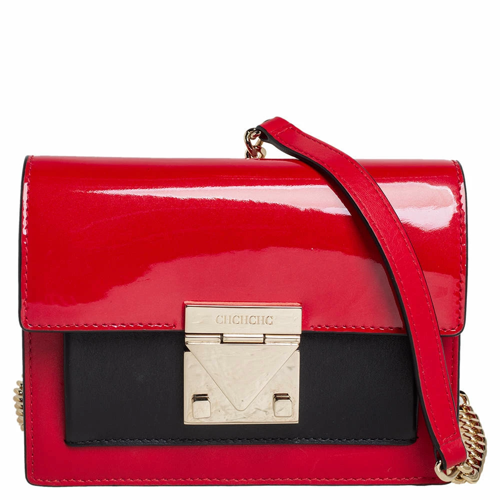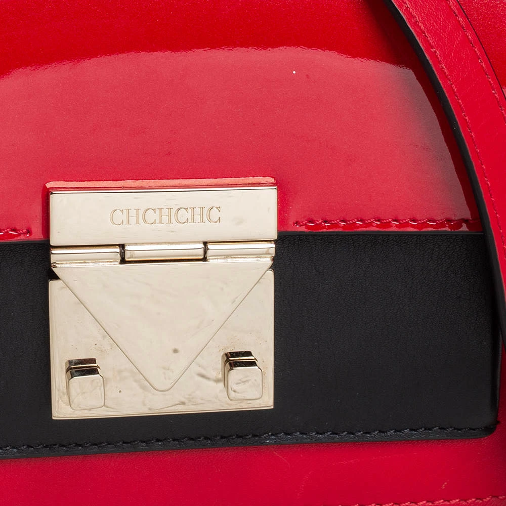 This bag from Carolina Herrera in red and black is stylish and functional. Crafted from patent leather and leather, the bag features a front flap and a single shoulder strap. The insides are canvas-lined and the bag is complete with the brand logo engraved on the gold-tone lock at the front.