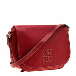 A truly posh and elegant piece to add to your collection. This Carolina Herrera bag is crafted from red leather and features a shoulder strap. The front flap detailed with CH opens to a spacious fabric interior that will hold all your daily necessities.