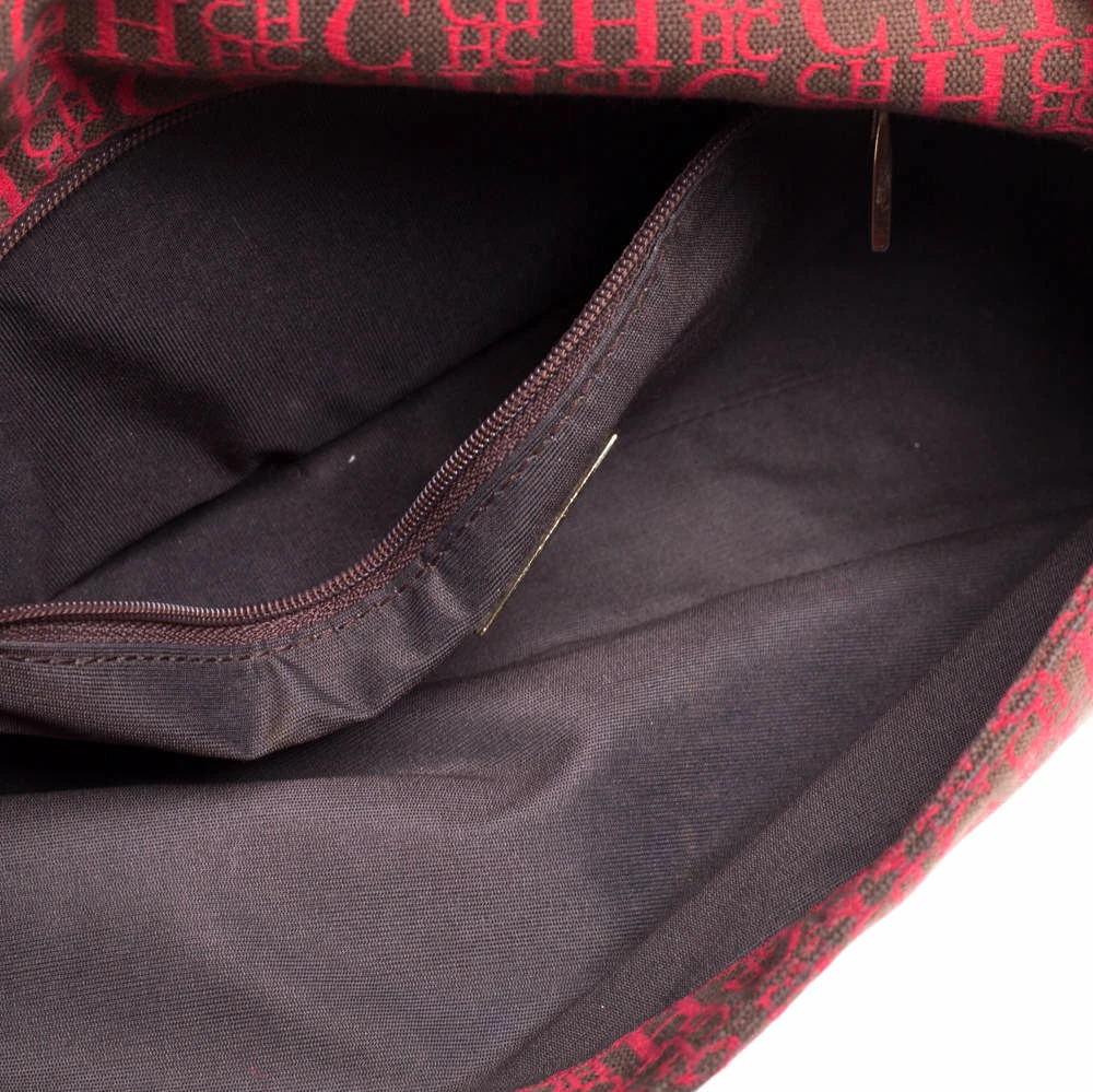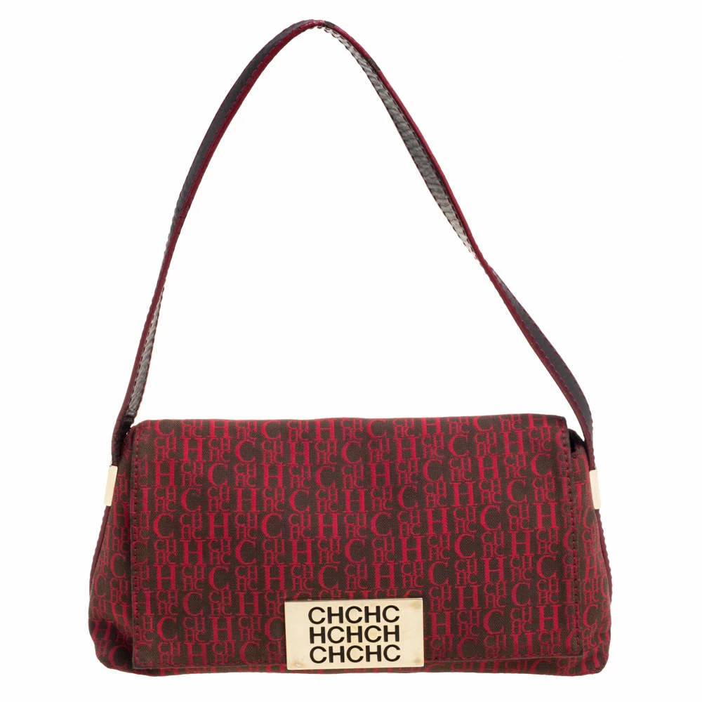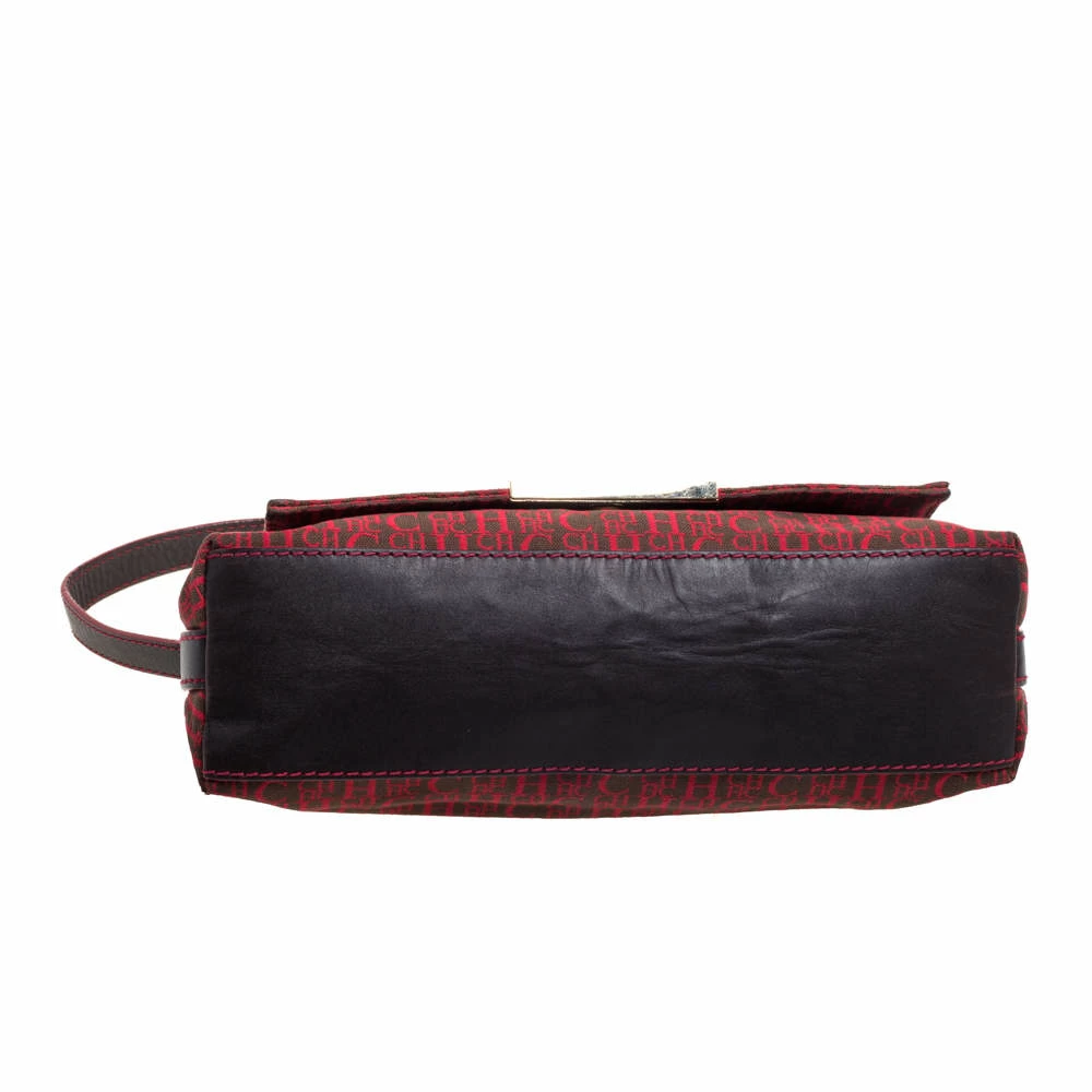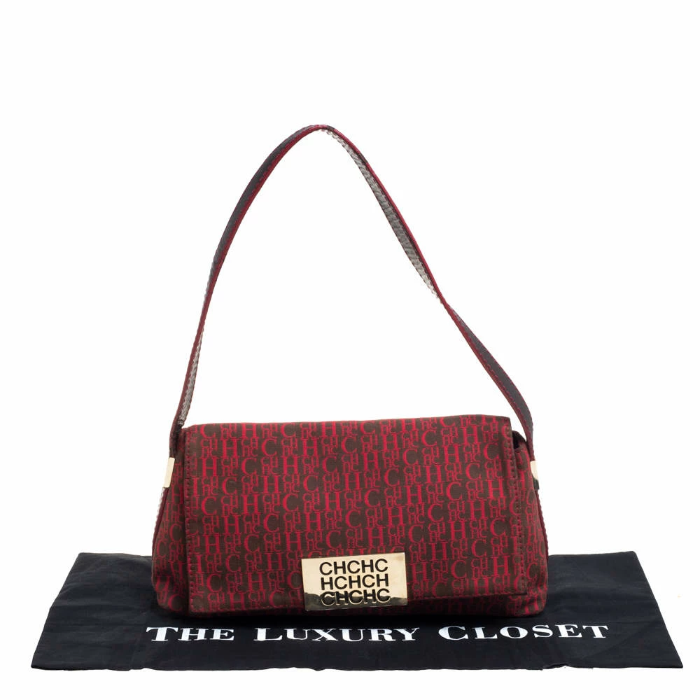 Add a touch of sophistication and style when you carry this Carolina Herrera handbag with your favorite outfit. Crafted from red-colored monogram canvas and leather, the logo-accented front flap opens to a well-sized interior for your essentials. Drape the single strap over the shoulders and flaunt your fashion-forward choices.