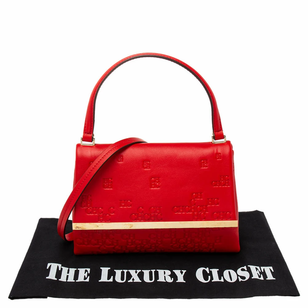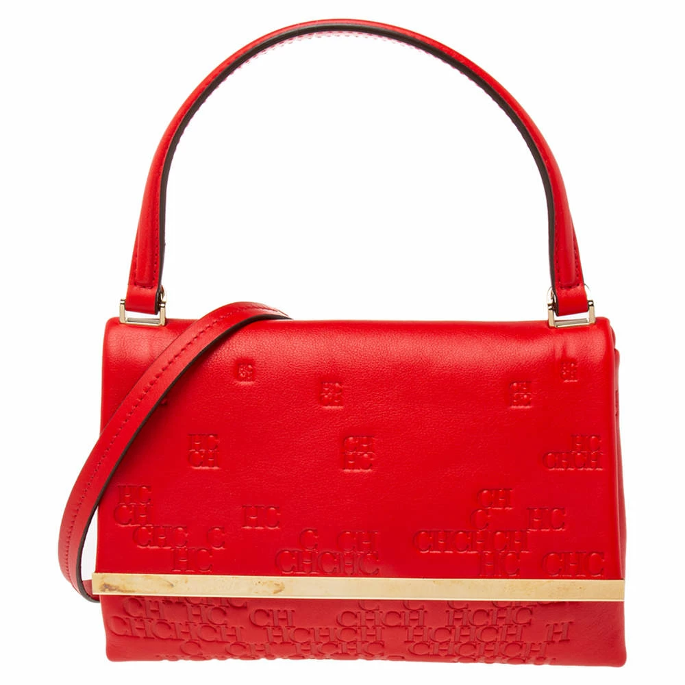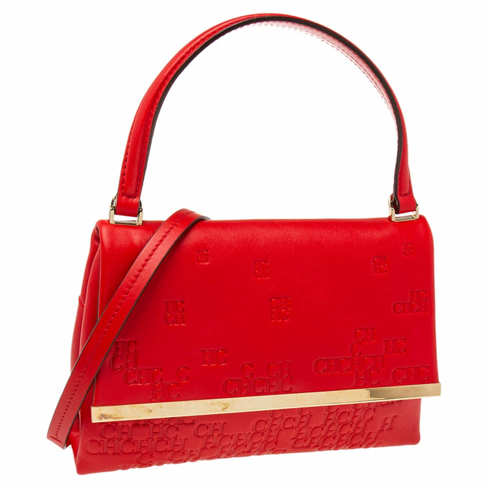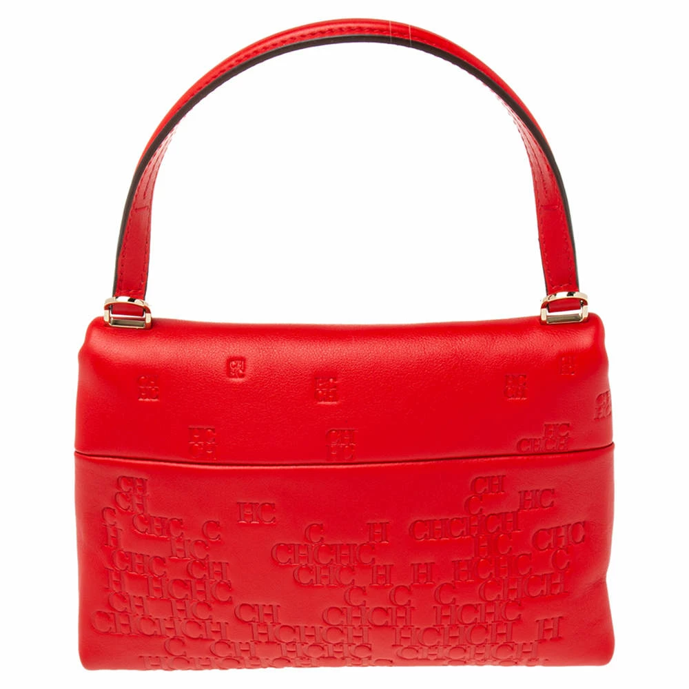 This Camelot bag from the House of Carolina Herrera is great to appear stylish and trendy! It is made from red Signature -embossed leather on the exterior. It has a neat canvas-suede interior, gold-tone hardware, and a top handle. This stunning bag is certainly worth the investment.