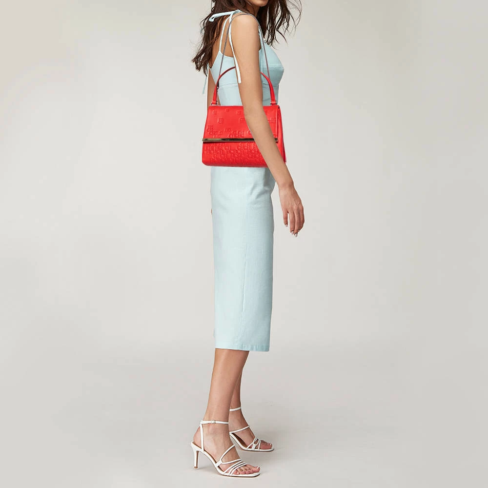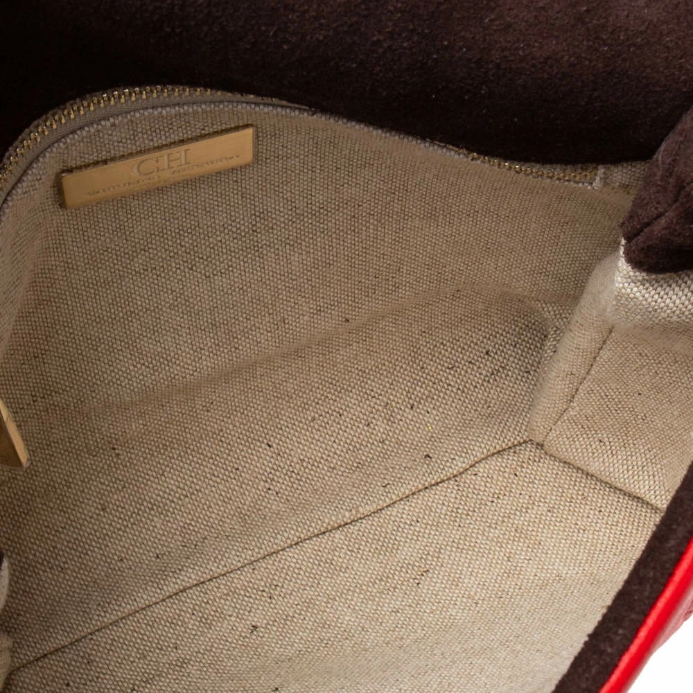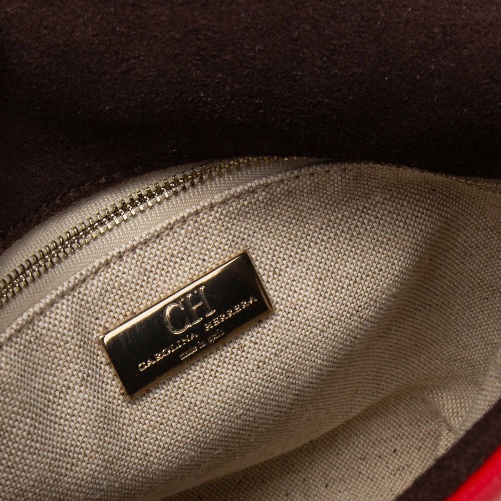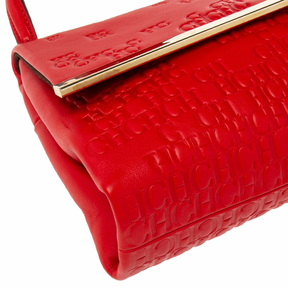This Camelot bag from the House of Carolina Herrera is great to appear stylish and trendy! It is made from red Signature -embossed leather on the exterior. It has a neat canvas-suede interior, gold-tone hardware, and a top handle. This stunning bag is certainly worth the investment.