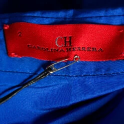 Beautifully tailored by the House of Carolina Herrera, this dress will incorporate nothing but elegance and demure into your appearance. It is styled using royal-blue taffeta fabric and displays two external pockets, a flared fit, and a button-type closure. Look gorgeous as you don this beauty!
