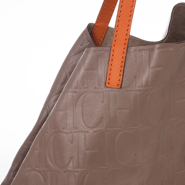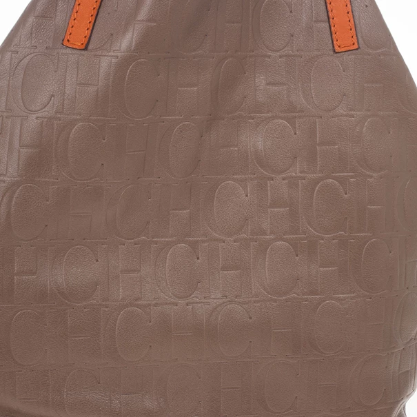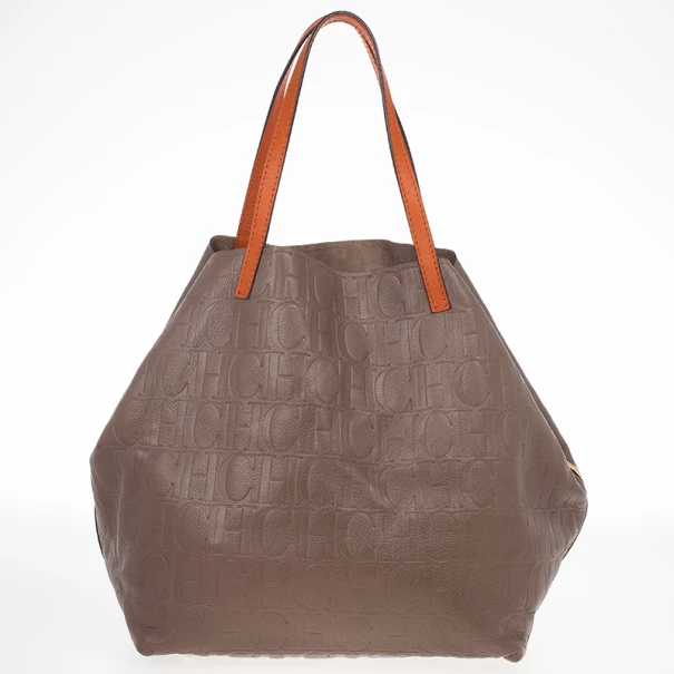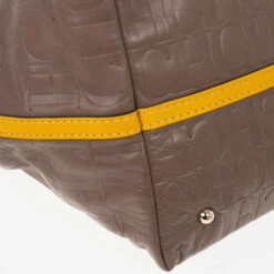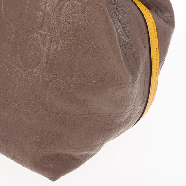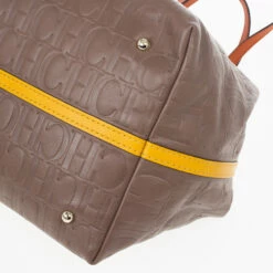 This monogrammed Carolina Herrera tote is funky and casual. Perfect for everyday use, its leather exterior is embossed with the CH logo, combined with orange leather top handles. The sides feature mustard yellow straps, closing at the top with gold-tone pin-closure. The spacious interior has a leather base and unlined sides for a comfortable look.