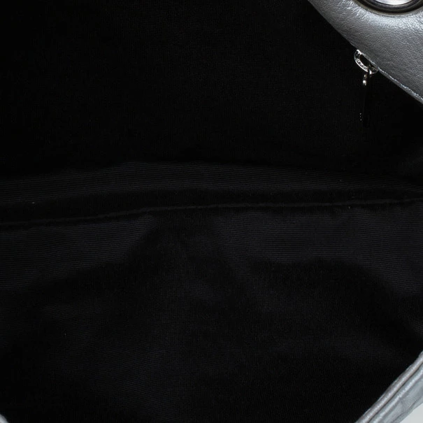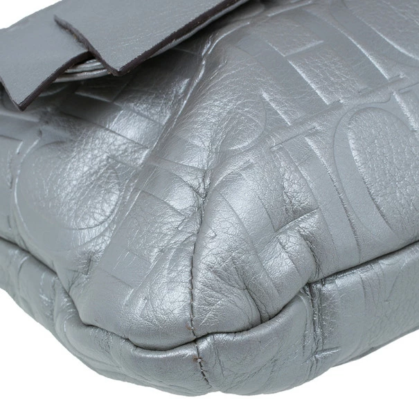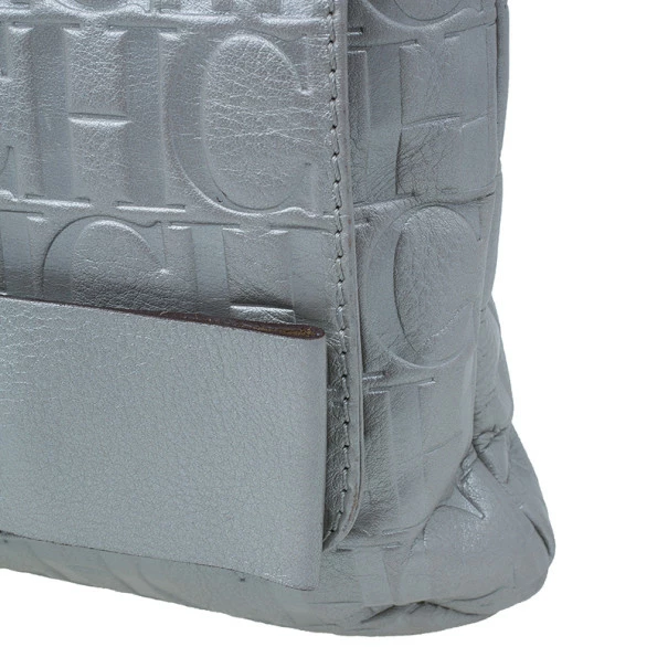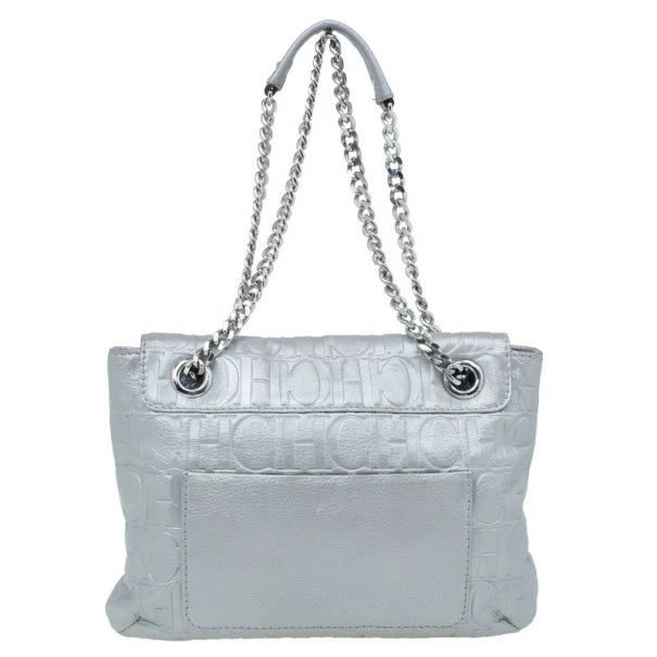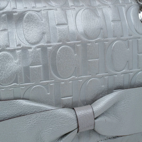 This Audrey bag from Carolina Herrera’s collection is a charming handbag that you will just love to flaunt. Crafted from silver CH monogram leather, the exterior is accented with a leather bow, flap front closure, chain-link shoulder straps and polished silver hardware. The black canvas lined interior features a zip pocket. You’ll never go wrong with this CH bag!