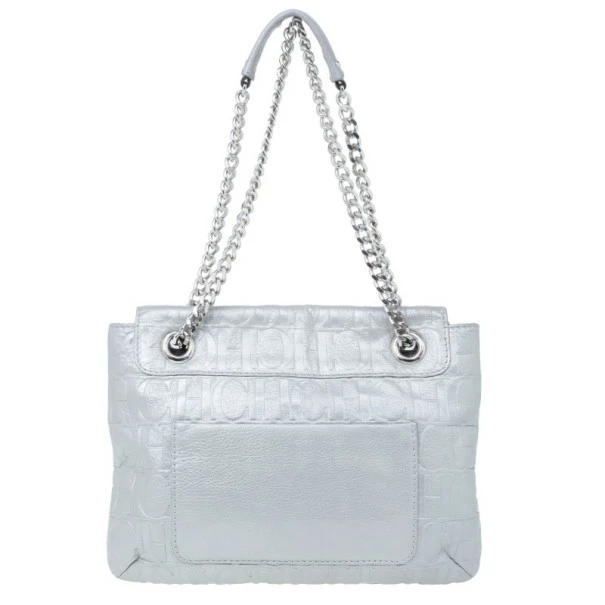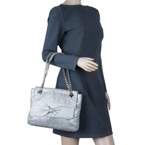 Earlier priced at $565 (2,062 AED)This Audrey bag from Carolina Herrera’s collection is a charming handbag that you will just love to flaunt. Crafted from silver CH monogram leather, the exterior is accented with a leather bow, flap front closure, chain-link shoulder straps and polished silver hardware. The black canvas lined interior features a zip pocket. You’ll never go wrong with this CH bag!