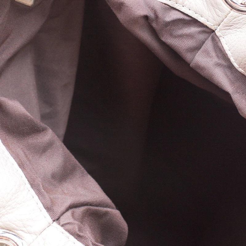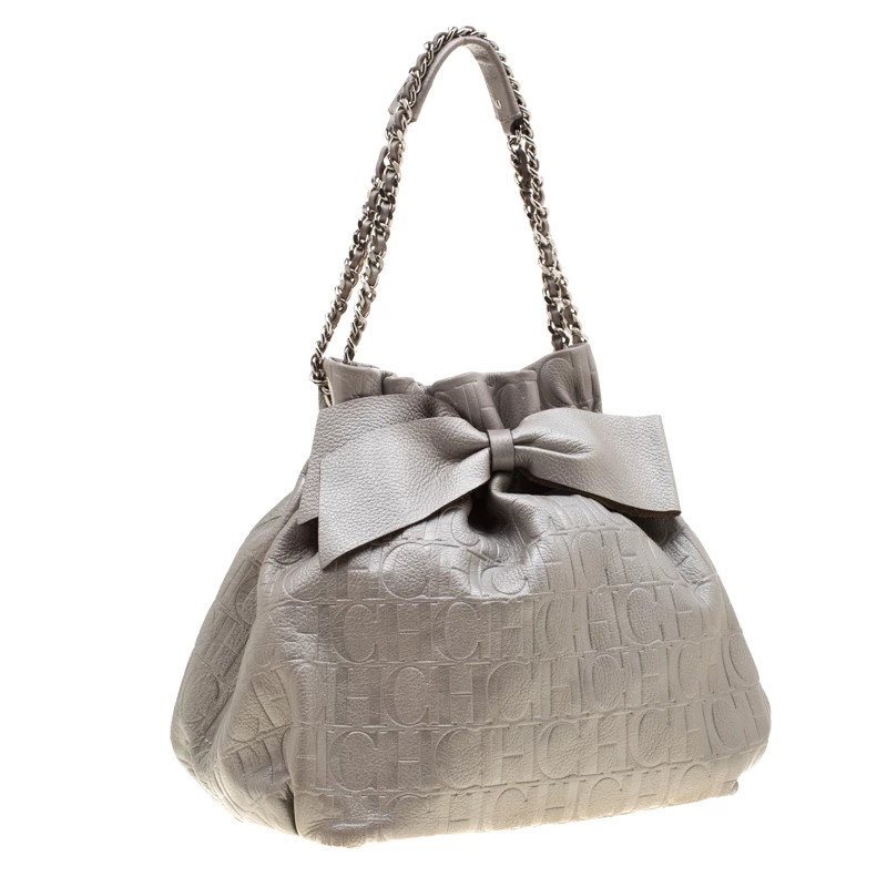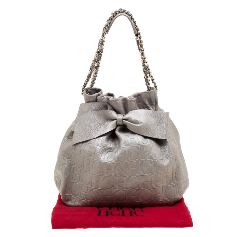 Carolina Herrera presents a lovely bag for the luxurious you. This leather bag, embossed with the label’s monogram all over, is artistically designed to emulate your style and to be at par with the latest fashion. The interior of this bag is styled with fabric lining and its silver exterior makes it chicer.