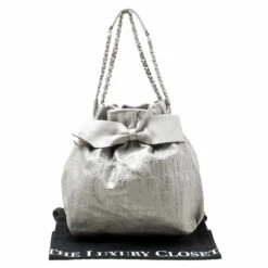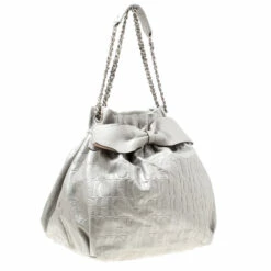 Adorn this hobo from Carolina Herrera that is gorgeous and durable. The bag is crafted from Monogram leather and styled with a bow on the front. It features dual chain and leather handles and a fabric interior sized to hold your belongings.