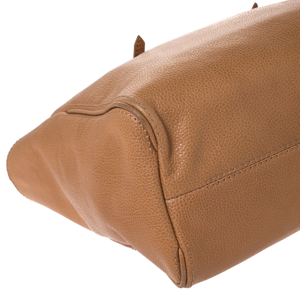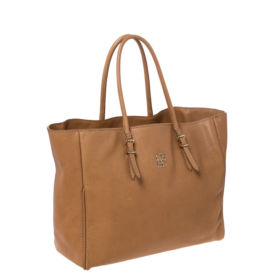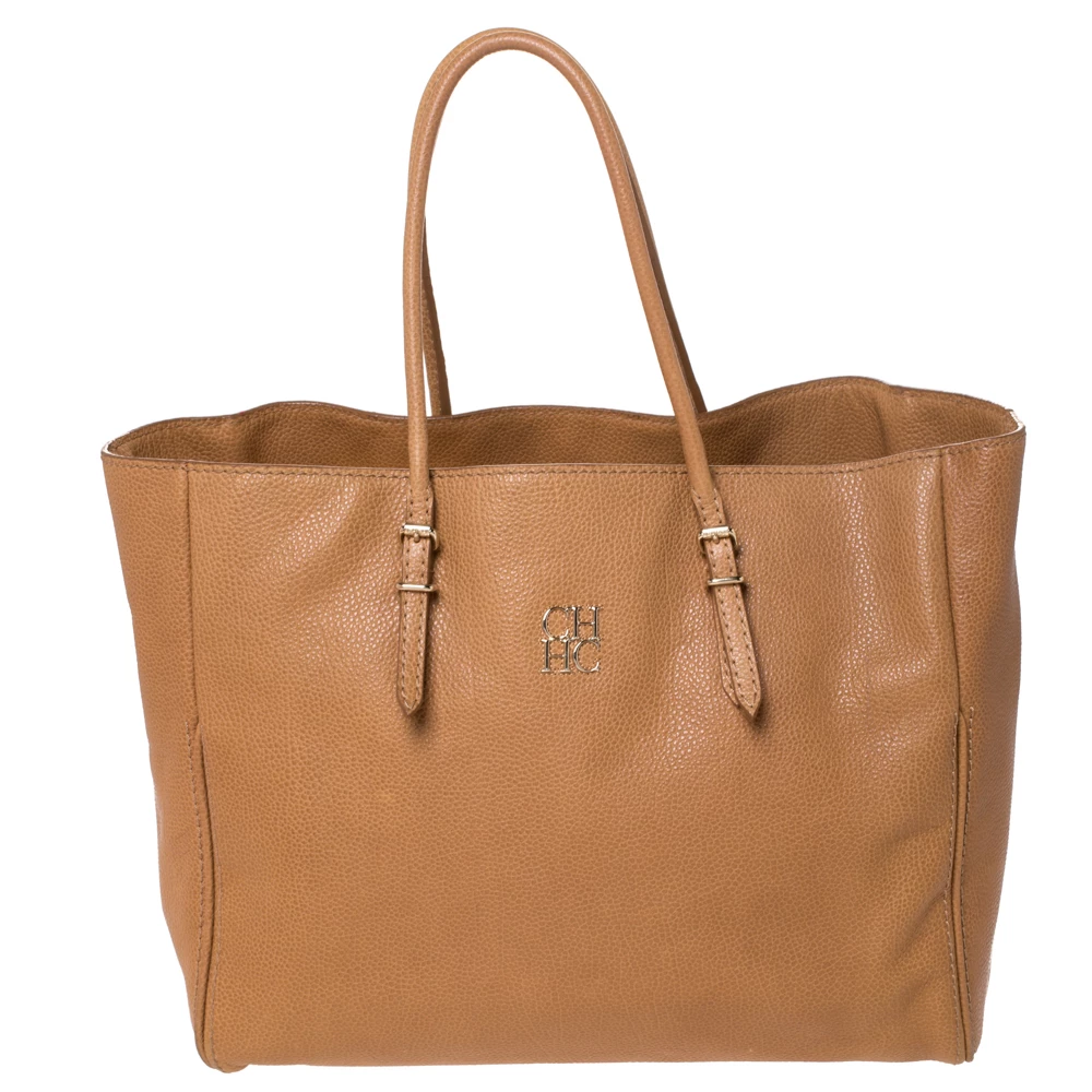 Highly durable and extremely fashionable, this tote is crafted with leather and has the brand logo in gold-tone on the exterior. It’s interior is embossed with monogram details and the tote is held by twin top handles. Displaying an impeccable design, this tan Carolina Herrera tote is a wardrobe classic and stands out.