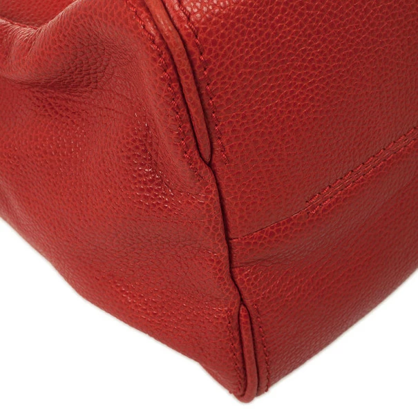 From the 2013 Tempo collection, this adagio bag will add a fun twist to your look. This bag is made from grained leather with a flap top and gold tone hardware. It features two thin rolled leather handles with buckle details. The interior has one one monogram embossed leather patch pocket.