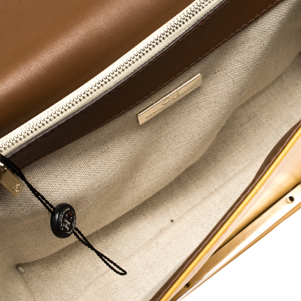 Known to create something very unique for its customers, Carolina Herrera does it again with this very chic bag. Crafted from fine leather, the bag features a CH logo plaque in gold-tone hardware on the flap. The exterior is accented with a stylish handle strap and studs on the base. The fabric-lined interior features a zip pocket.