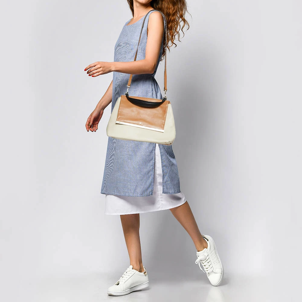 Carry this gorgeous Carolina Herrera creation wherever you go and get set to receive compliments. Meticulously crafted from leather, this bag has been styled with a top handle, a removable shoulder strap, and a fabric interior to hold all your necessities. The combination of three colors is what makes this creation style and worth the buy!