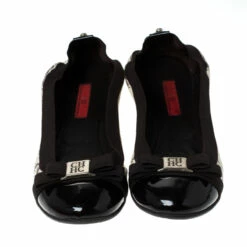 These ballet flats from Carolina Herrera are sure to lend a classy and stately look to everything that you wear. They are crafted from monogram coated canvas and feature smooth black leather cap toes with bows on the vamps. They are complete with round toes and comfortable insoles.