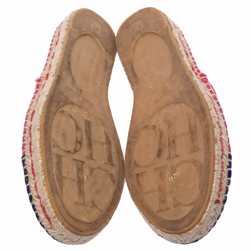 Those casual outings will look a lot more stylish in these espadrilles from Carolina Herrera. They have been crafted from two-tone canvas and styled with the signature CH logo stitching on the vamps. They are complete with jute insoles and durable rubber soles.