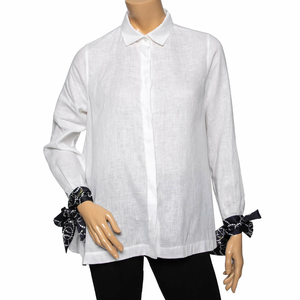 Carolina Herrera shirts are designed with a focus on both comfort and luxury so that you can wear them for a long time. This simple creation is tailored from quality materials and comes in a white shade. Long sleeves with feminine bow ties and a buttoned front design make the shirt complete.