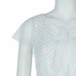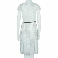 This adorable and charming dress by Carolina Herrera will surely assist you with a sumptuous look. Crafted from polyester, it features a pretty polka dot print, round neck, cap sleeves and laudable ruffle detailing. This dress is accentuated with a rear zipper.