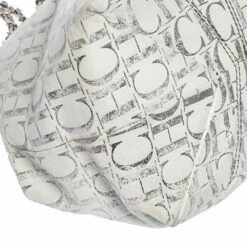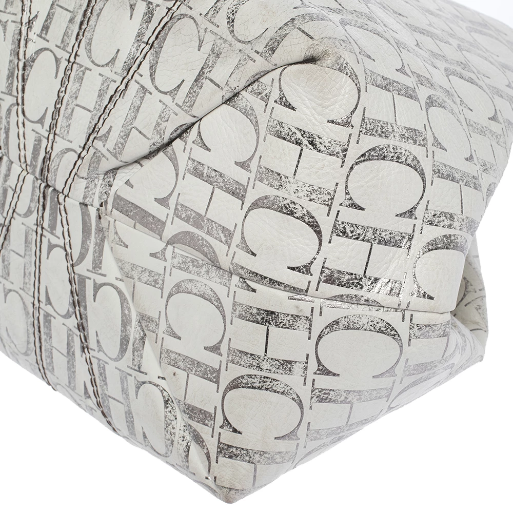 Expertly designed, flaunt a Carolina Herrera handbag like this one this season. Get ready to grab a lot of praises for your lavish and awesome appearance with this smart and monogram embossed leather handbag. It comes in lovely hues of silver & white. It is styled with dual chain handles and is finished with silver-tone hardware.