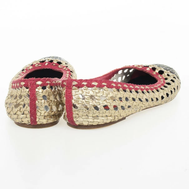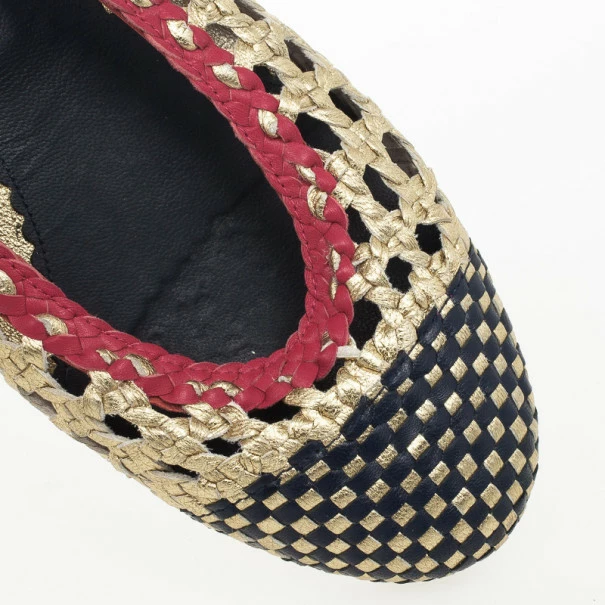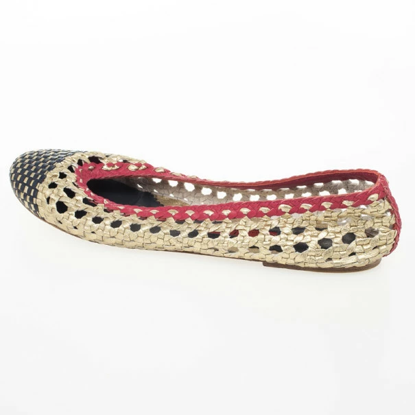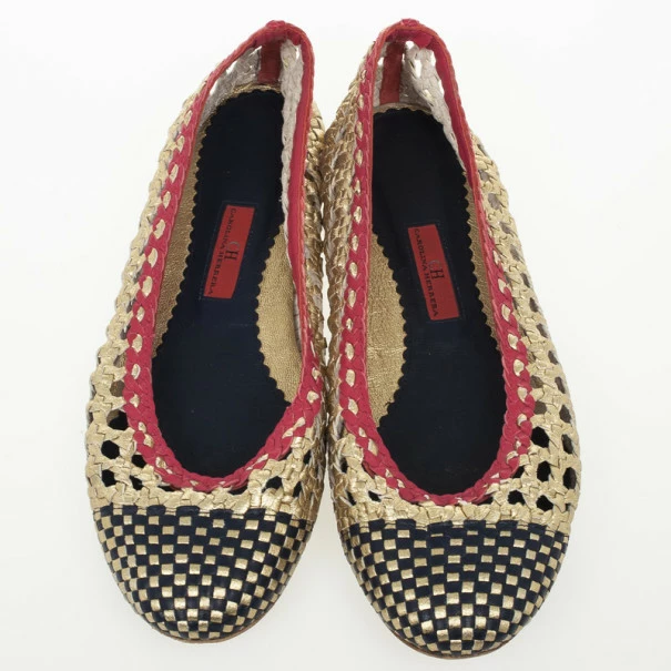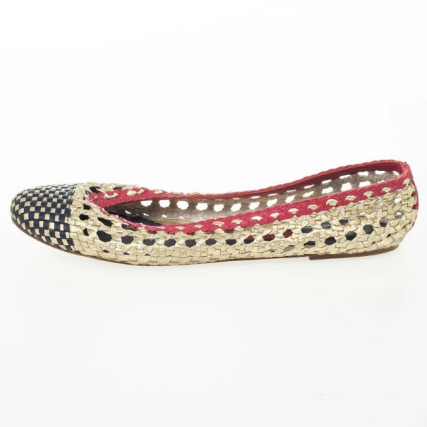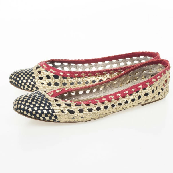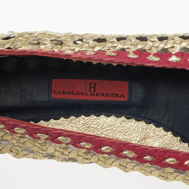 These Carolina Herrera shoes will add a fun twist to your outfit. They are crafted from woven leather. These lightweight shoes feature woven leather in damier patterns on the round toe caps. The insoles are leather padded. Original Retail Price: US $281
