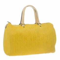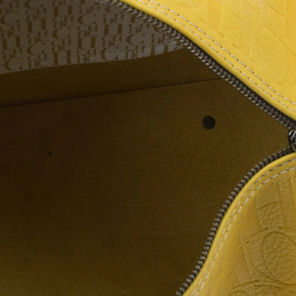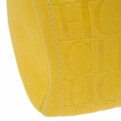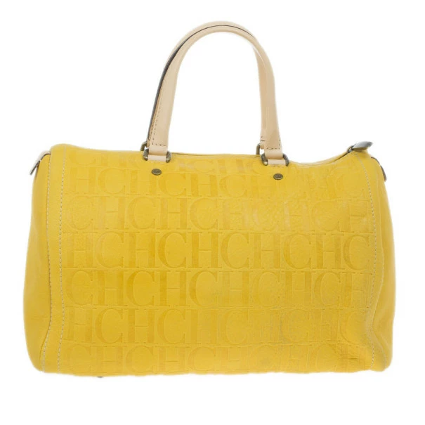 The Andy handbag collection was created by Carolina Herrera in 1974 as a tribute to her dear friend Andy Warhol, who had recently portrayed her beautifully in pop art style on canvas. This version of the classic Andy bag is crafted from soft yellow colored leather that is embossed with the CH monogram. It is accented with matching yellow stitching, double tan leather handles and gold hardware. The spacious interior is unlined and features a colorful fine canvas monogram pocket.Original Retail Price: US $600