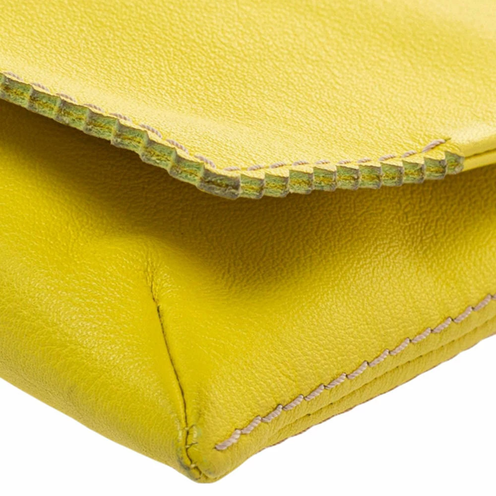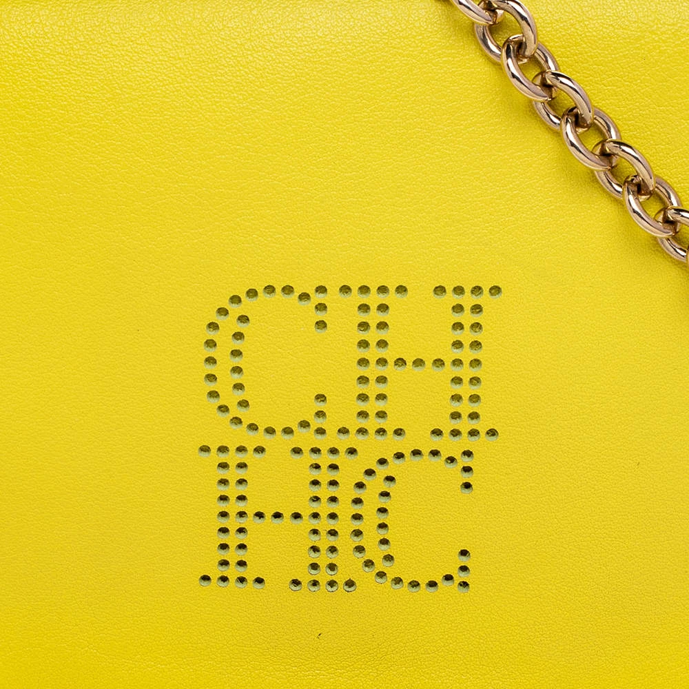 This stunning bag by Carolina Herrera is a must-have. Crafted from quality leather, it carries a yellow shade. It is held by a single shoulder strap made of chain-link and leather. It has a front flap with the perforated brand logo that opens to reveal a spacious interior. It is finished with a tassel and gold-tone hardware.