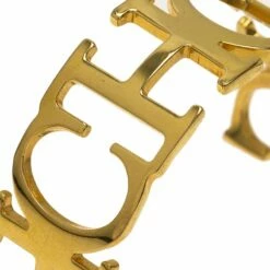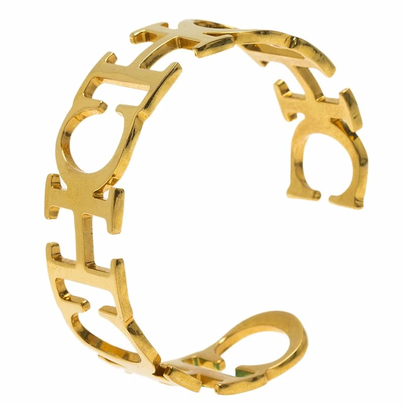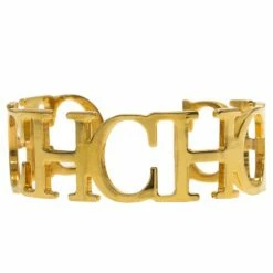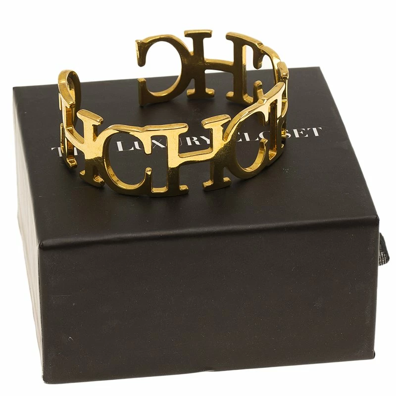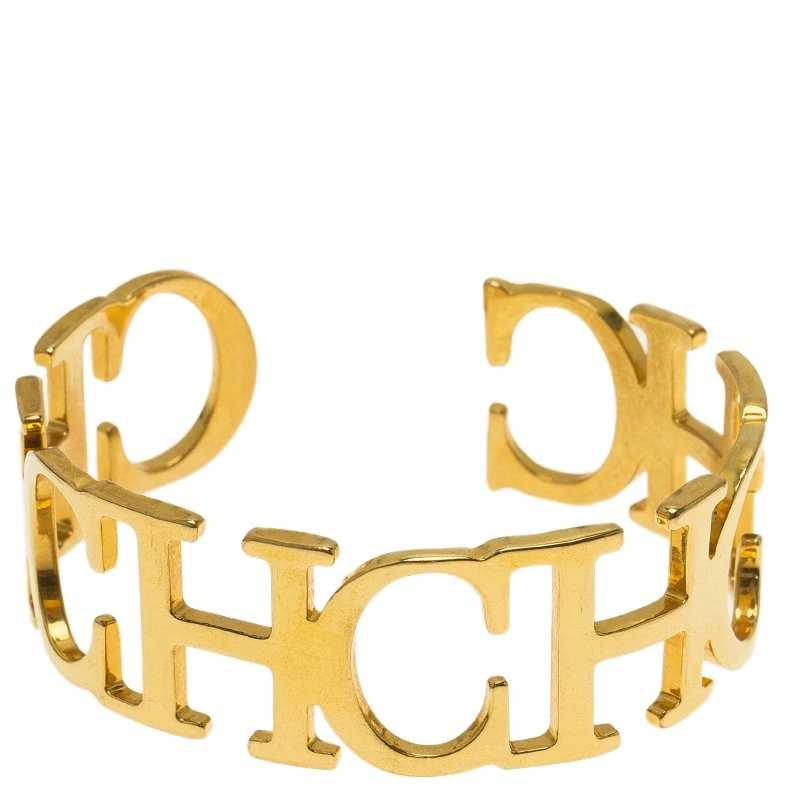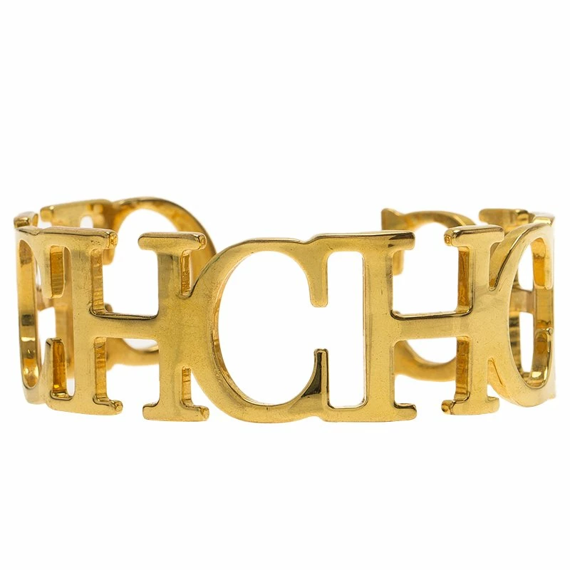 Simplicity and class combine to form this exquisite Caroline Herrera wide cuff bracelet. Made with gold-tone metal, it features the CH logos.